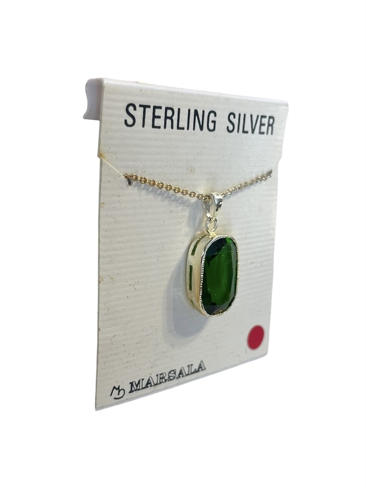 Sterling Silver Green Stone Pendant Necklace, like new on card