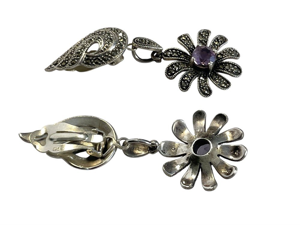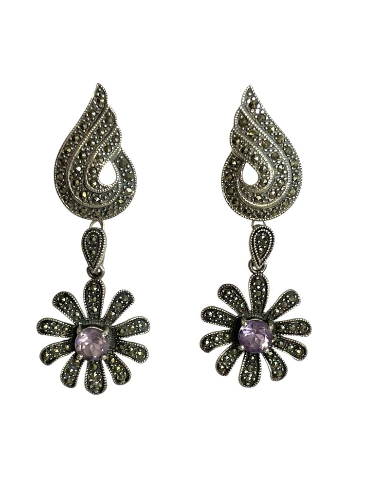 Sterling Silver Marcasite Earrings with Amethyst ~ 18.9 grams