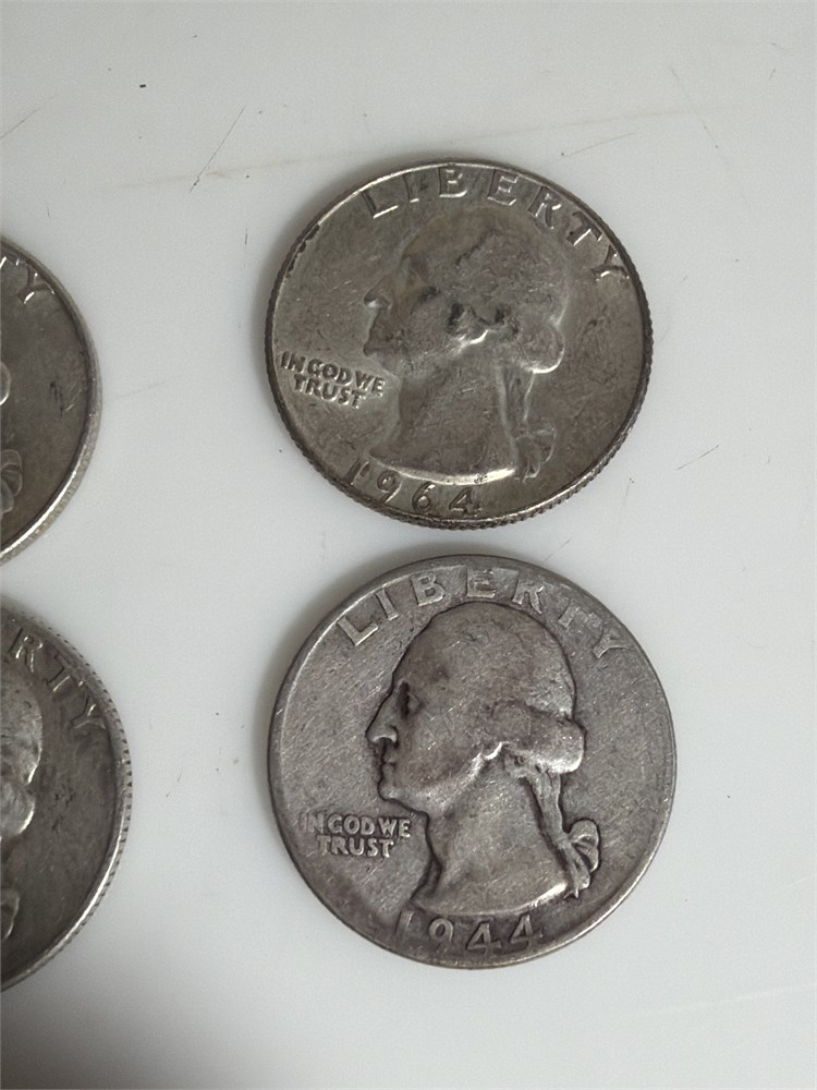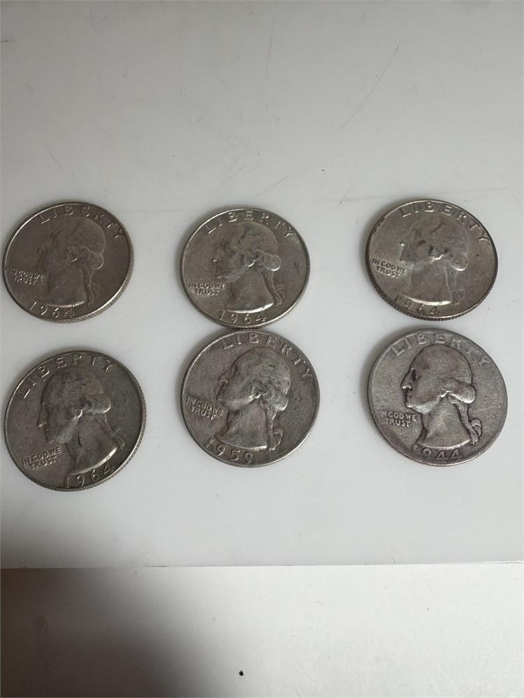 Six silver quarters all in very nice shape  1964, 1959, 1944