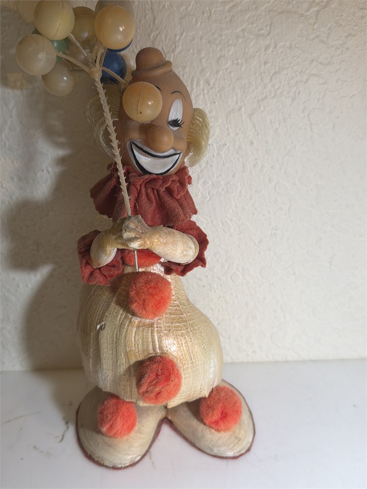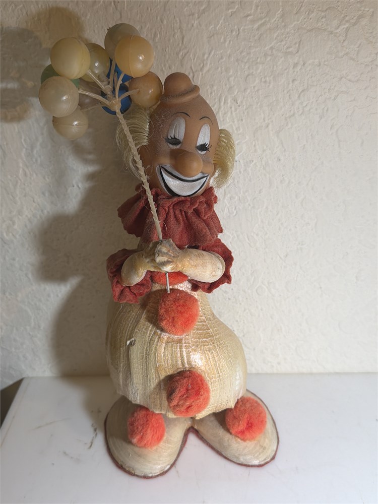 Sea Shell Clown Folk Art Figurine Sculpture Balloons Decor Vintage (L)