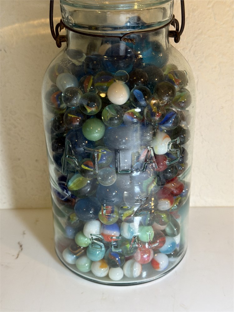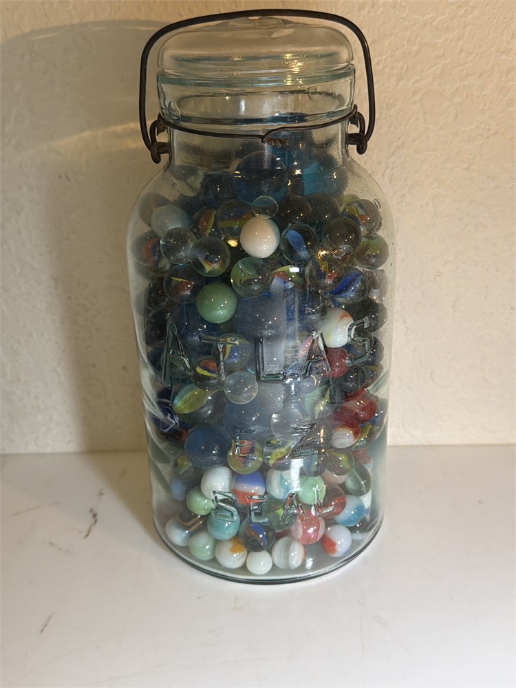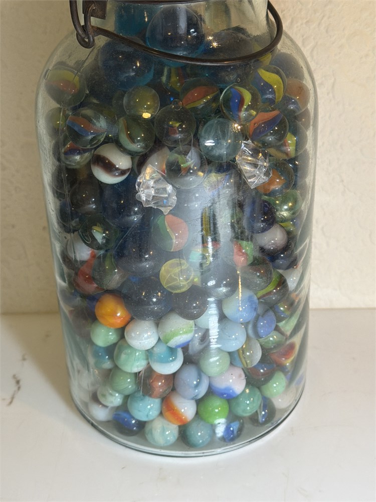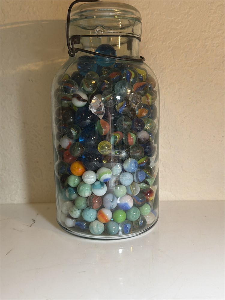 Vintage marbles old ones new ones jar is packed solid had to guess probably 300 to 400