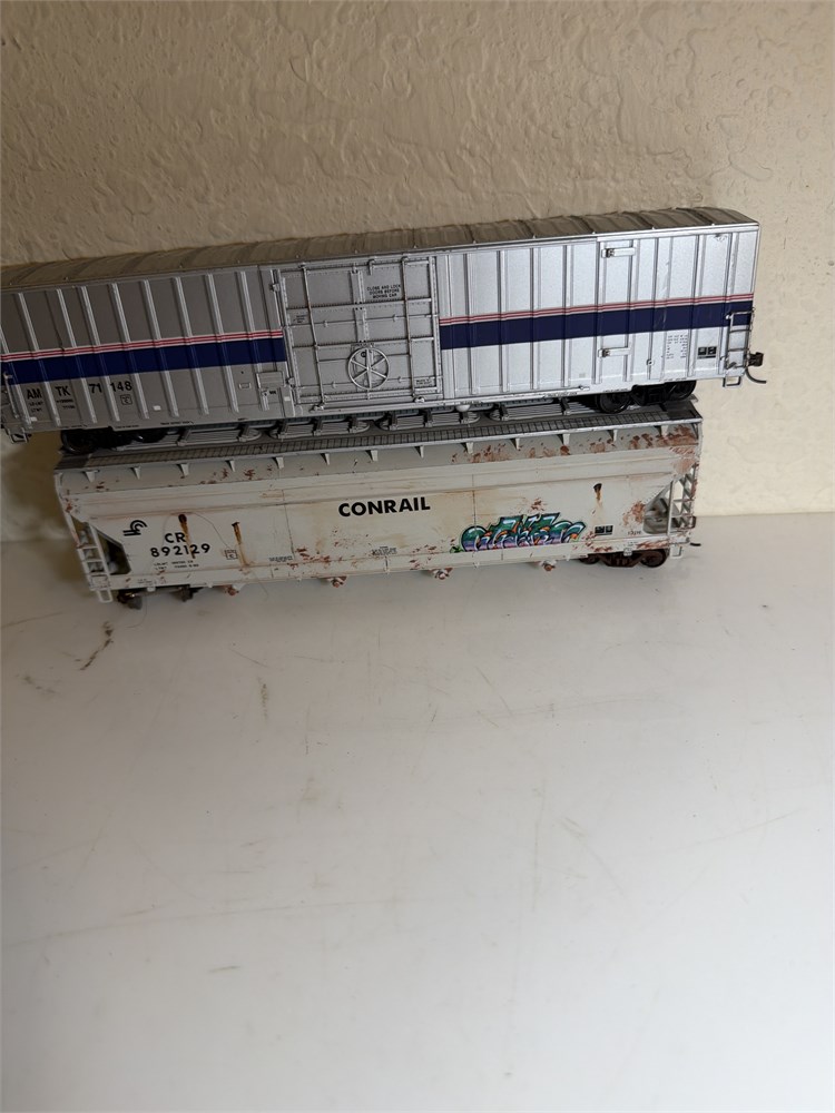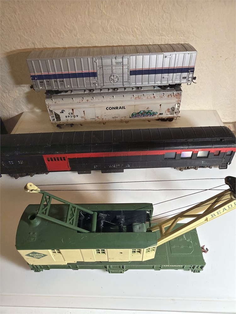 Bachmann Crane Car , Passenger car, and two Freight cars