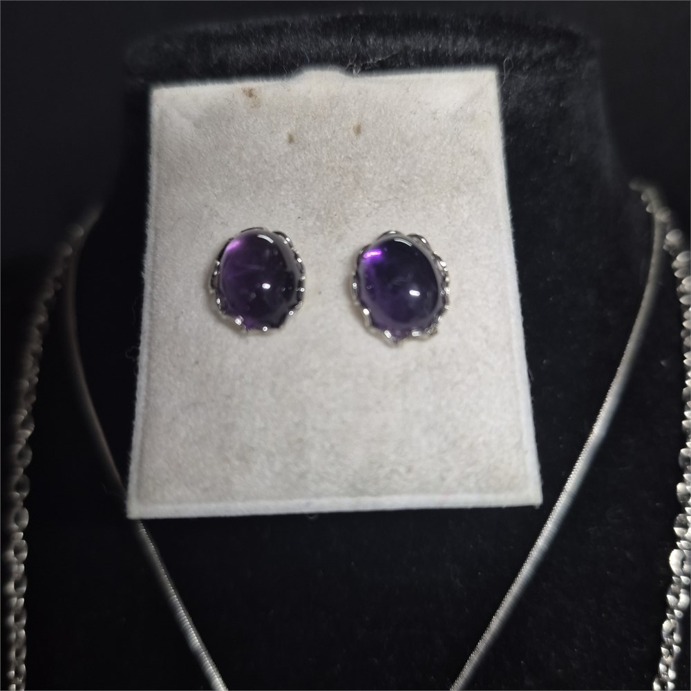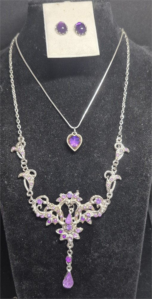 Vintage set ~ Purple & Silver :  Necklace/ Choker / Earrings