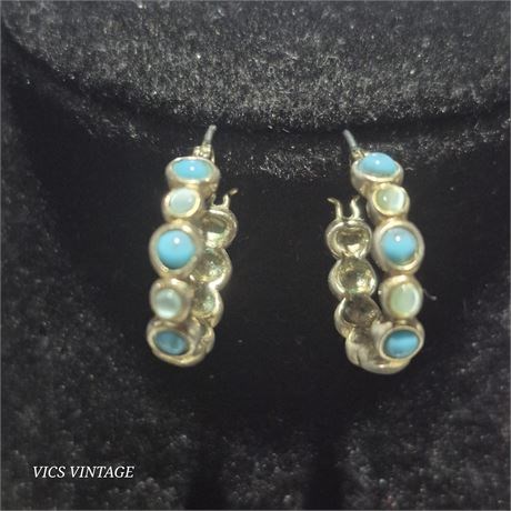 > coordinated pin earrings with turquoise stones