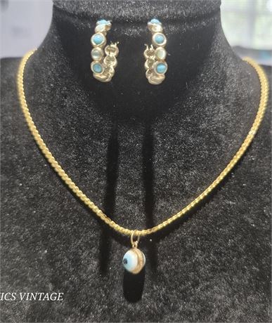Vintage "Korean" gold tone Necklace with "Eye" & Earrings Coord