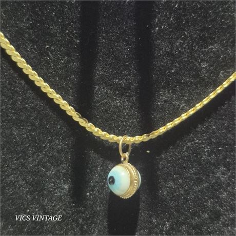 > gold tone Necklace marked "Korea" with enclosed dainty EYE bead