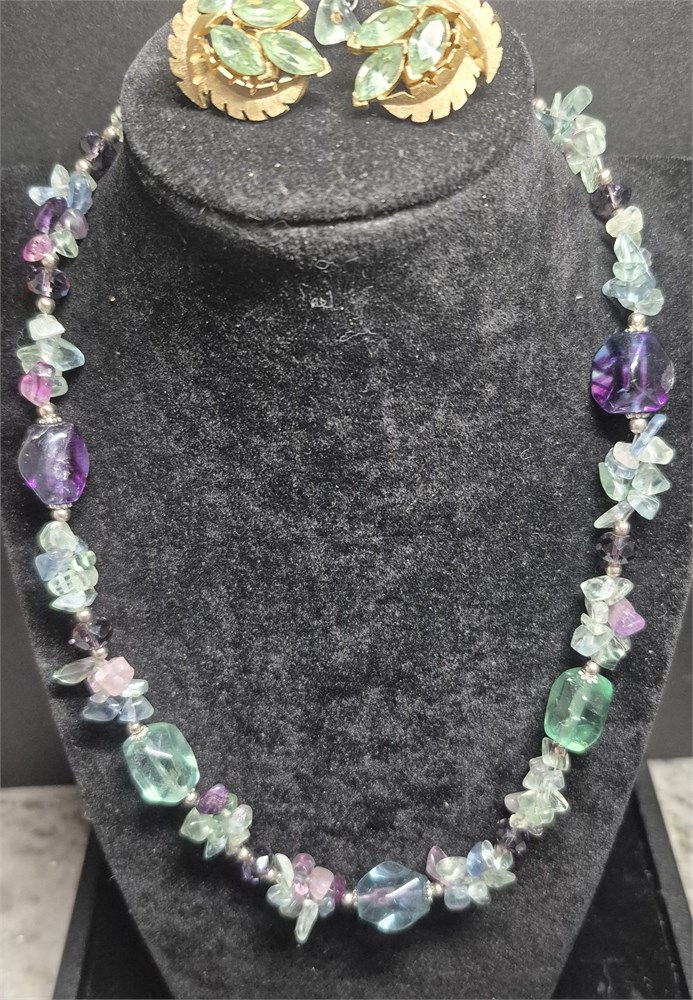 Vintage GLASS Necklace & Trifari Earrings to match [v]