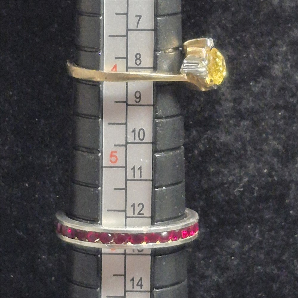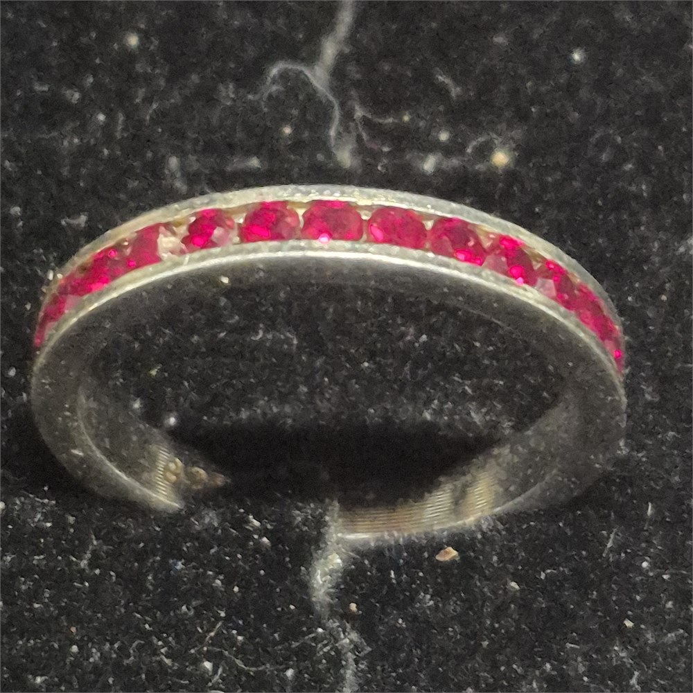 14k Gold HGE Ring & Sterling Ring w/ red rhinestones set [v]