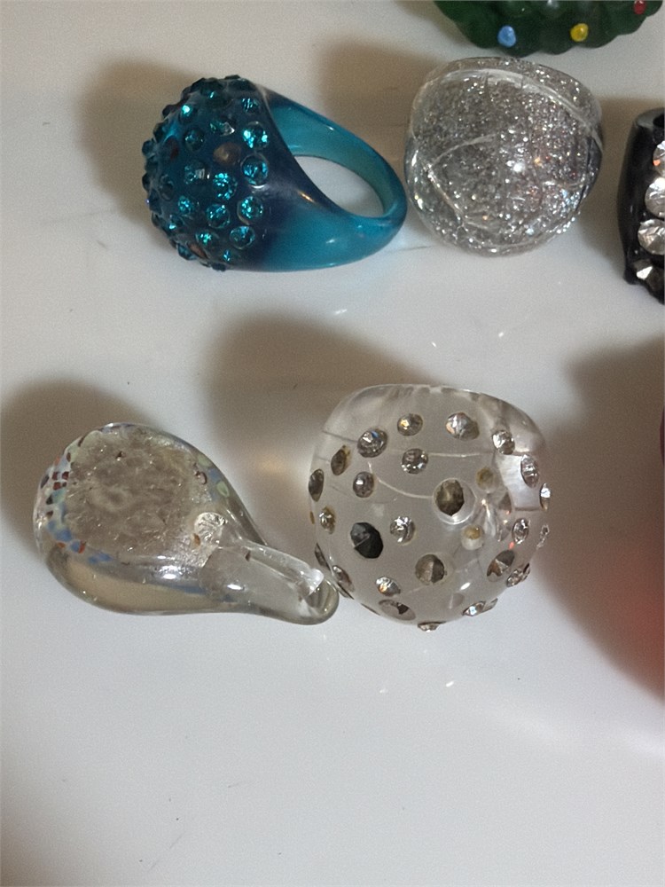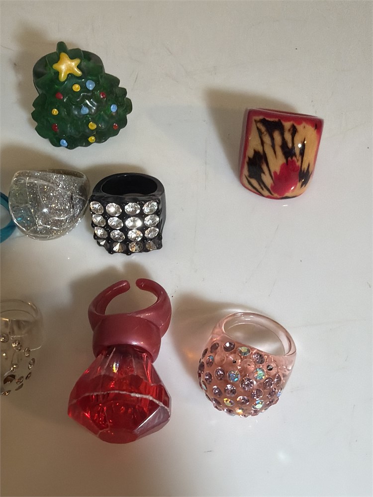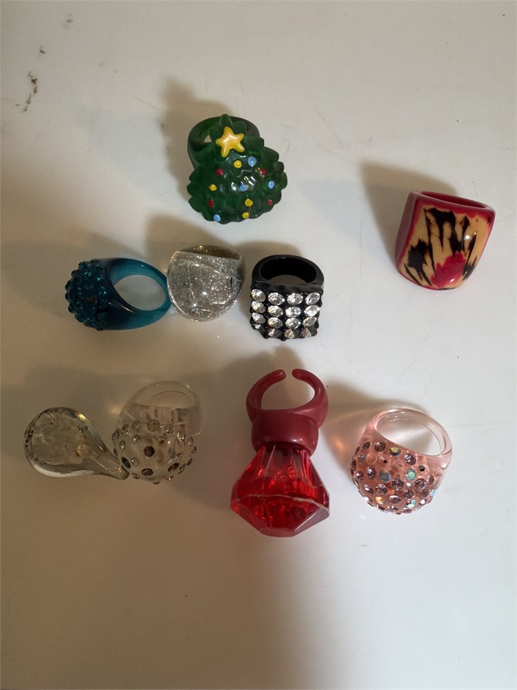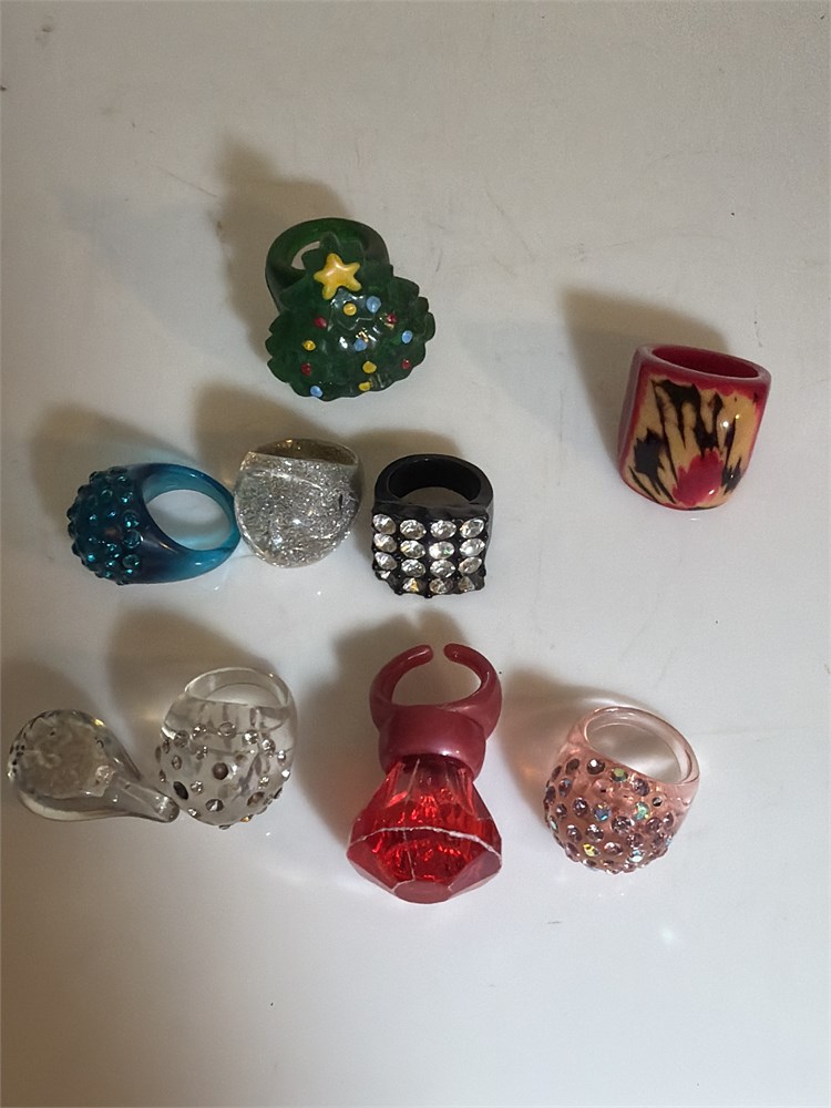 LOT OF 9 VINTAGE ACRYLIC RINGS, ASSORTED SIZES