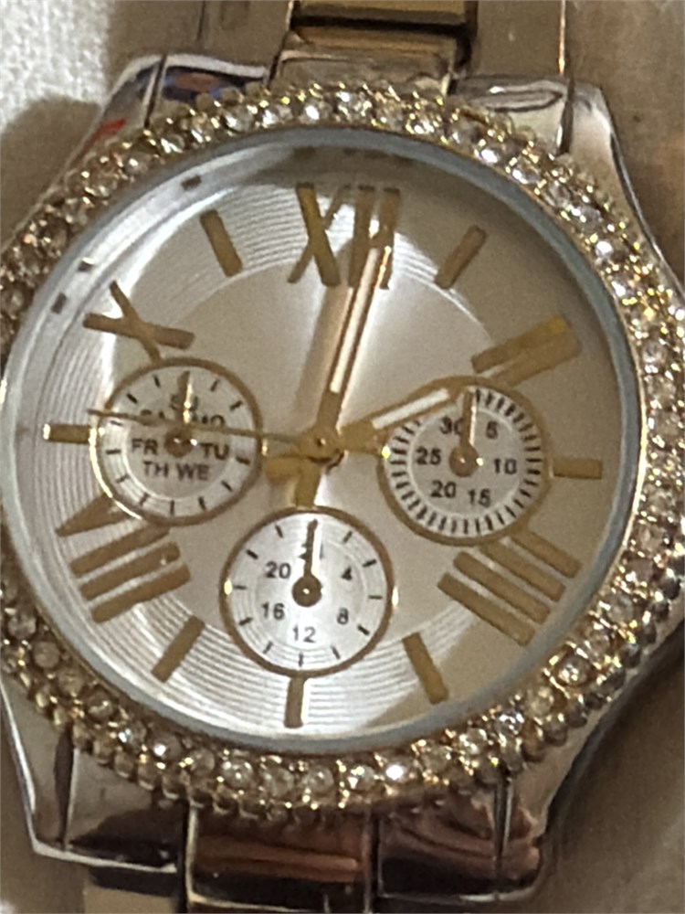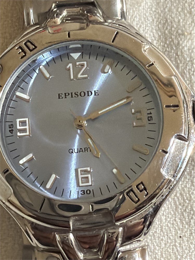 Round leather band, guest watch, EPISODE, silver with gold, lettering tone, black stretchy band everything watch five total