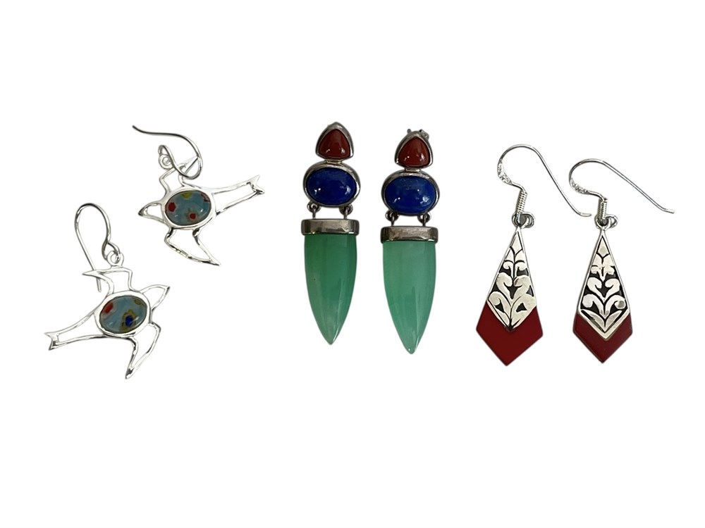 3 Pairs Sterling Silver Earrings ~ 15.5 grams
