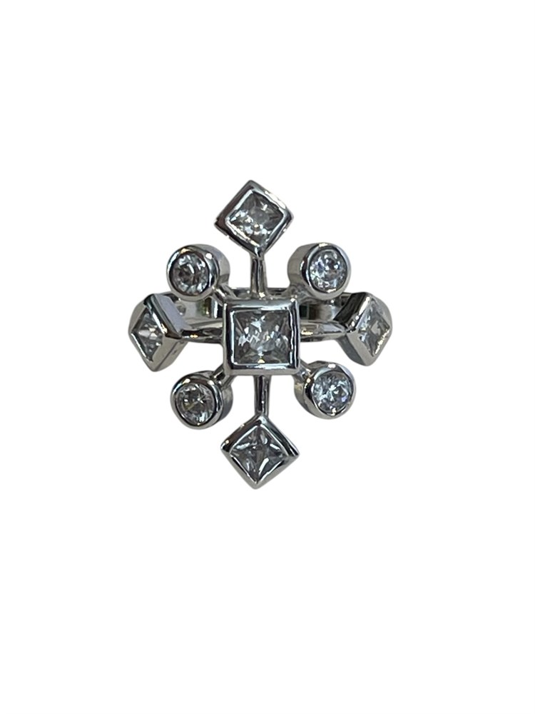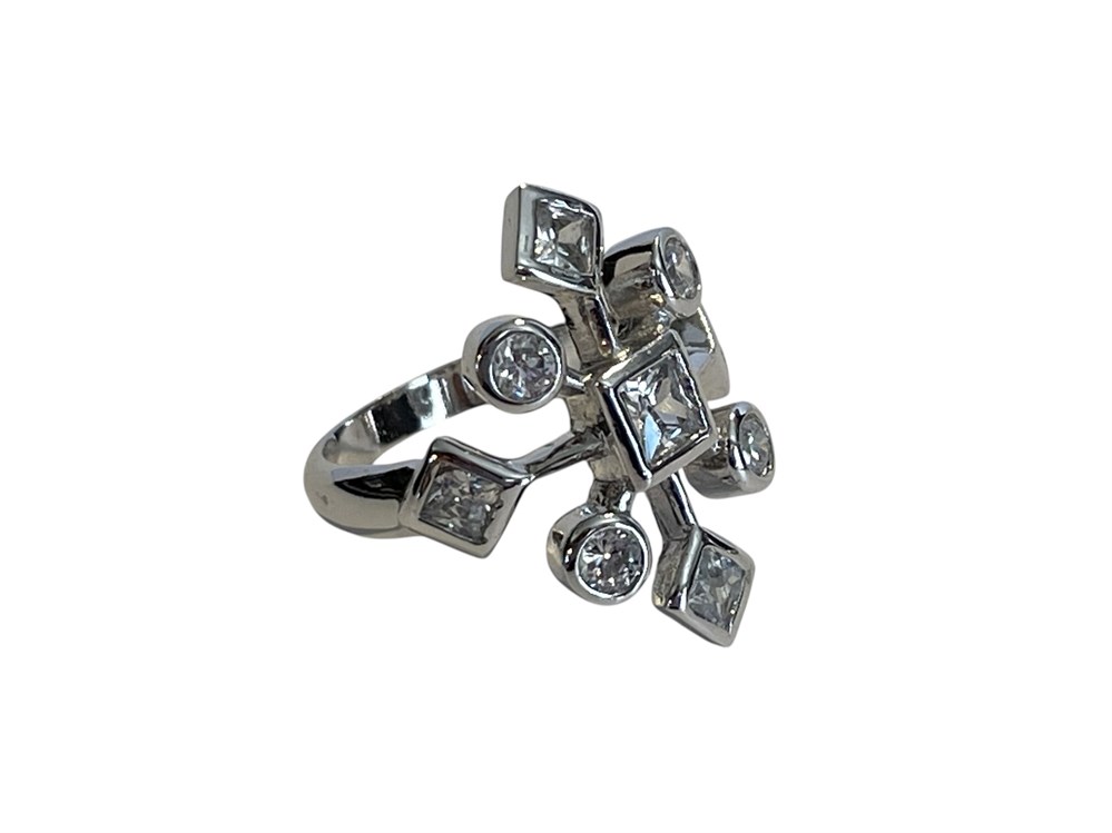 CZ Snowflake Ring, Sterling Silver ~ 4.9 grams