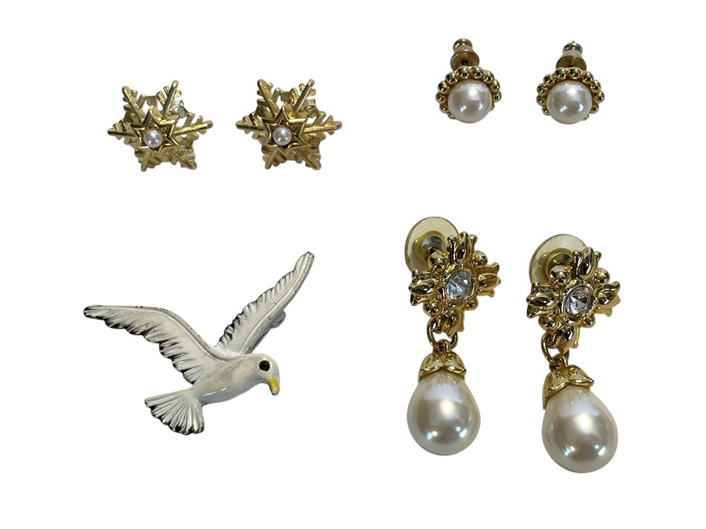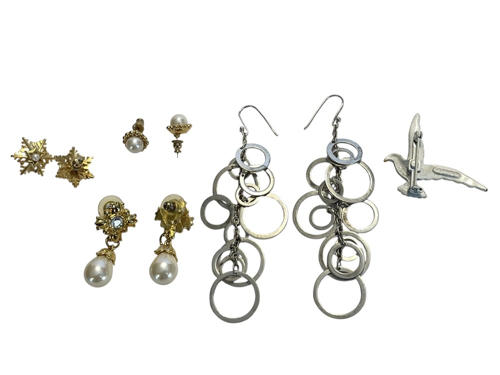 Gerry's Seagull Pin, and Costume Earrings Including Trifari