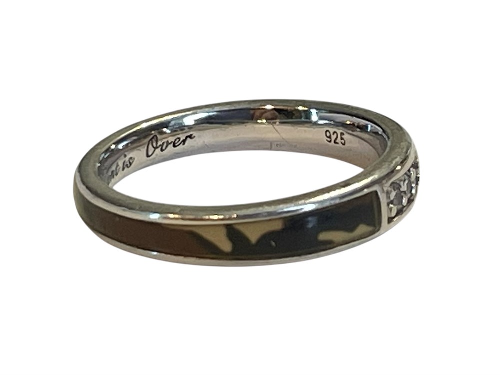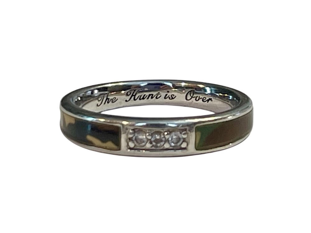 Camo "The Hunt Is Over" Wedding Band, Sterling Silver ~ 3.1 grams