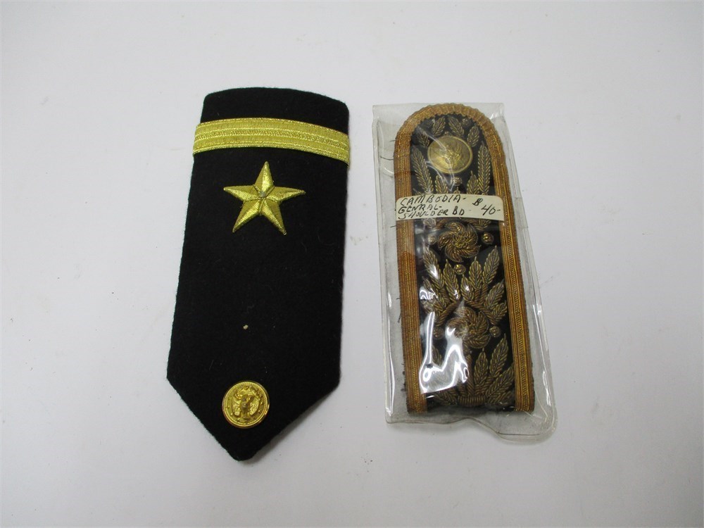 A pair of Vintage, Military Shoulder Boards, Navy Ensign's Insignia and & Cambodia General BD shoulder.