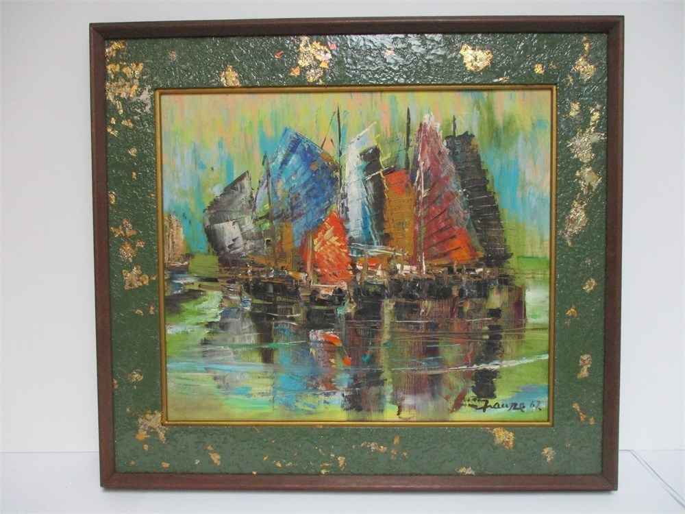 Vintage, Oil on Canvas Asian Junks