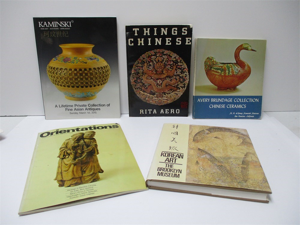 Lot of 5, Vintage Books from Korean Art, Chinese Ceramics, Collection of Asian Antiques, Discovery of Asia and the Pacific and "Things Chinese", about unlocking the mysteries of China.  All in very good gently used condition.