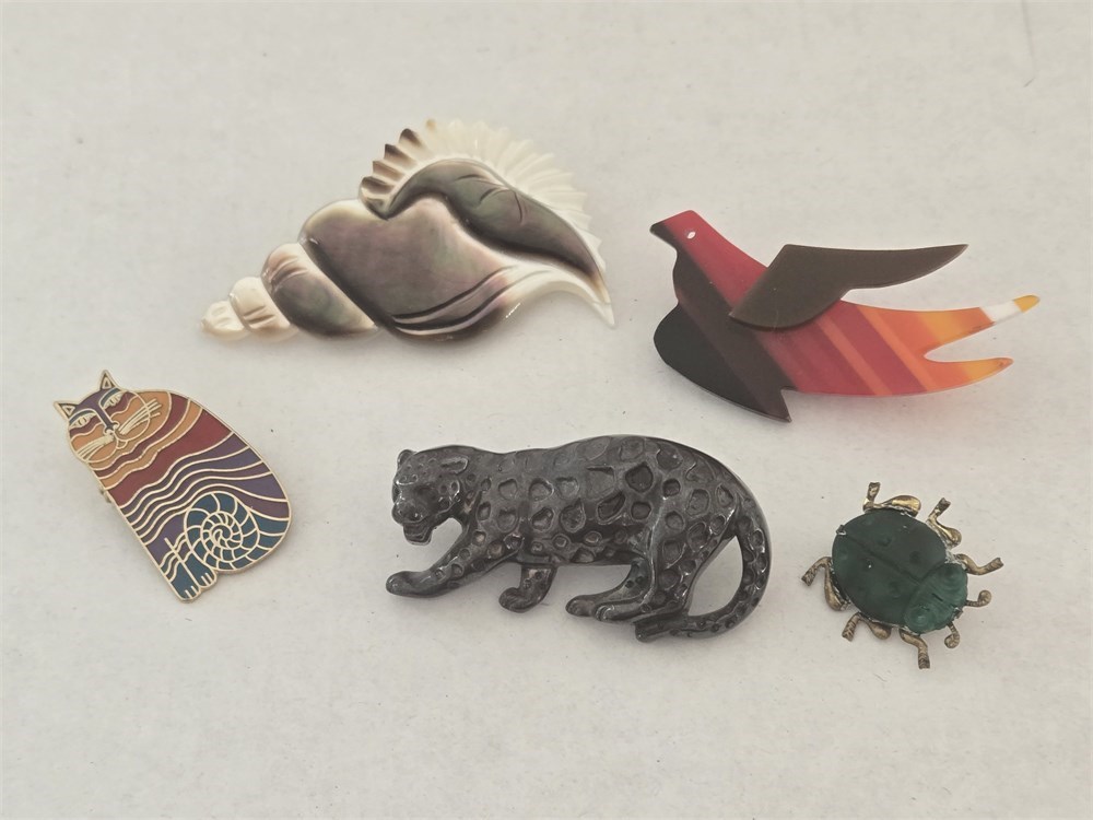 Lot of Vintage Brooches, Cat, Mother of Pearl Shell, Nice Lot