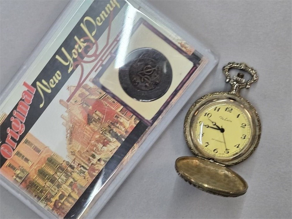 Vintage VaLaire Pocket WatchTrain,The Original New York Penny Copper Duit
