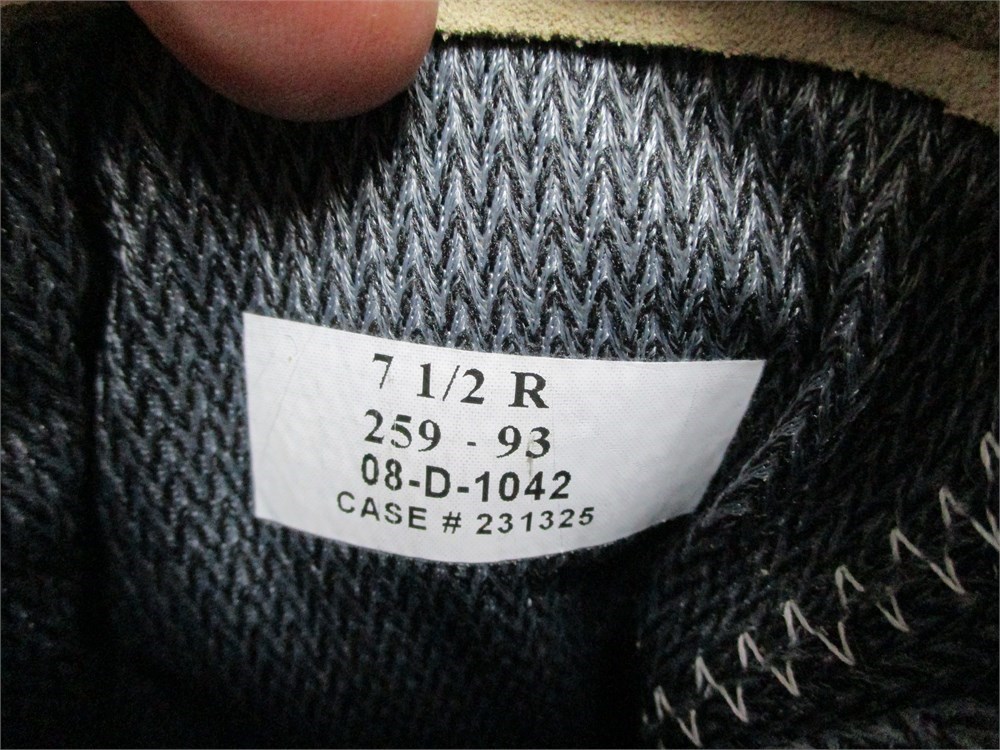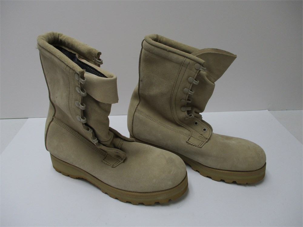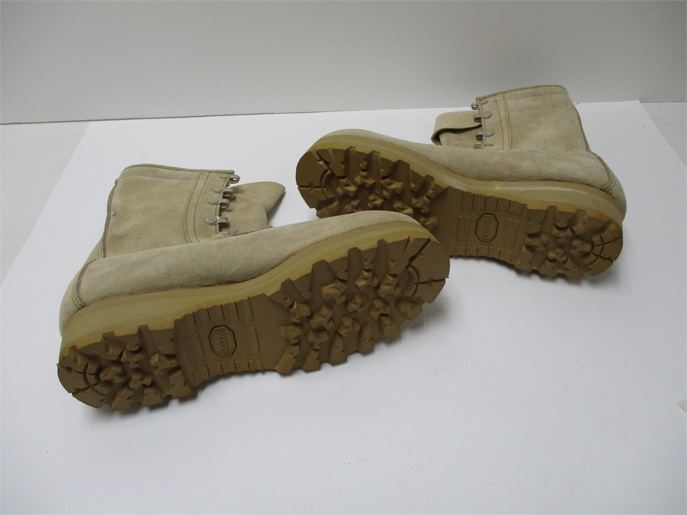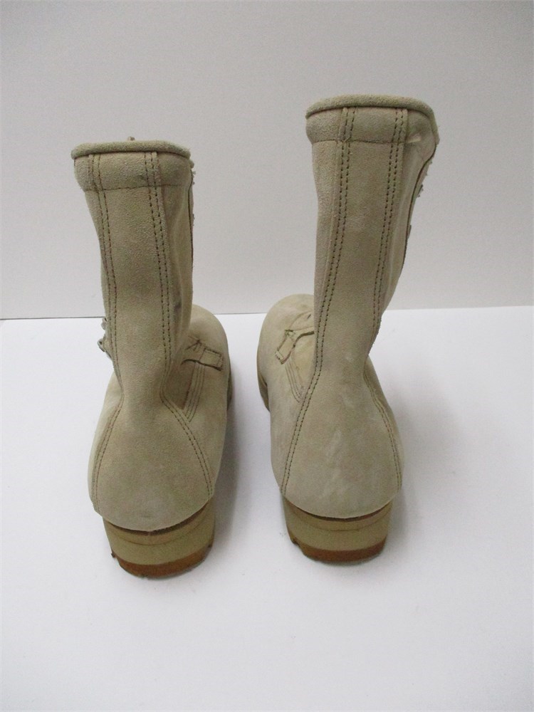 A very nice pair of  Gortex, Tan, Military Boots size 7.5 R.  Very nice, clean condition.  Has no laces but easy to replace.  Thick Vibram Lug Soles.