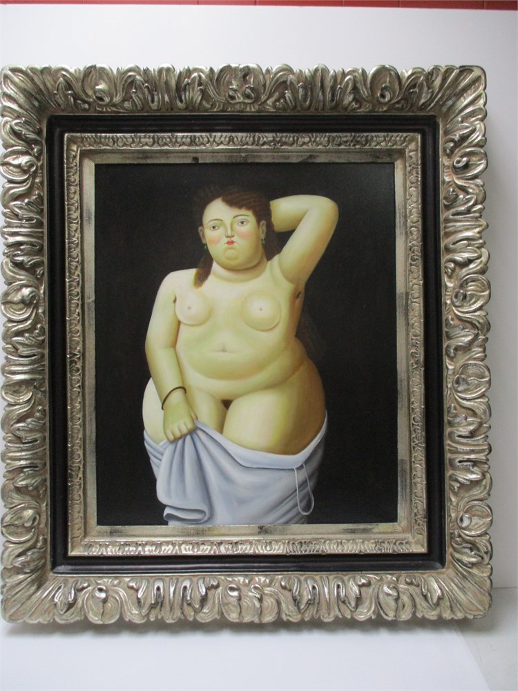 Large, NUDE, Framed, Acrylic on Canvas, 31x34, Fernando Botero, Reproduction