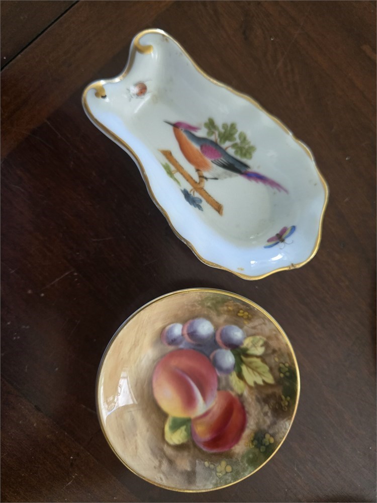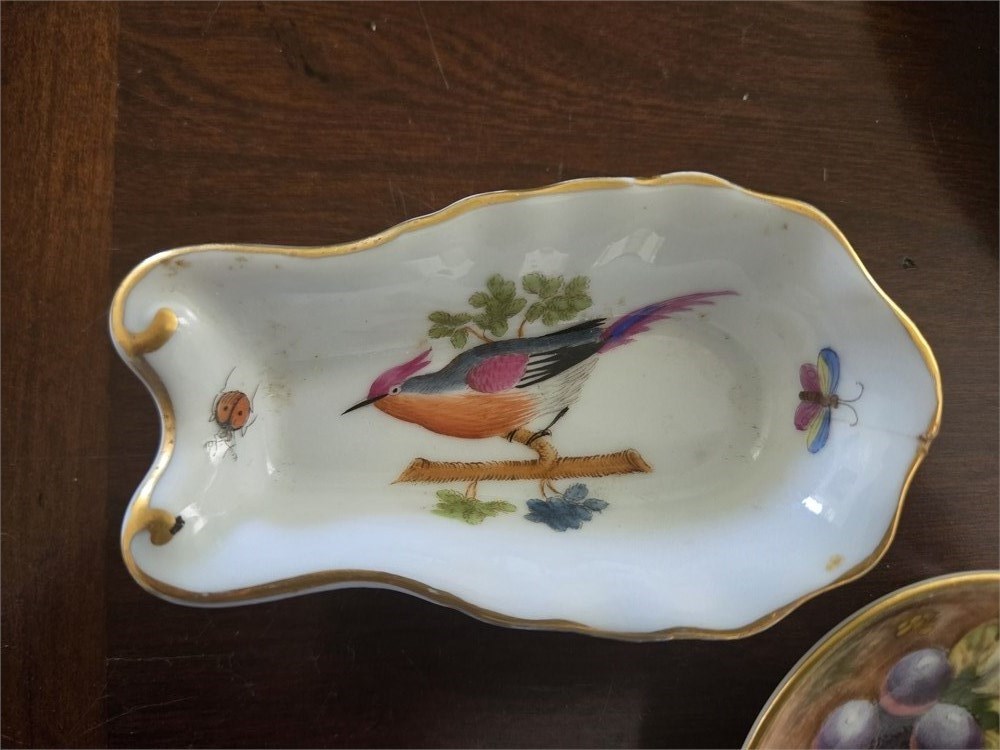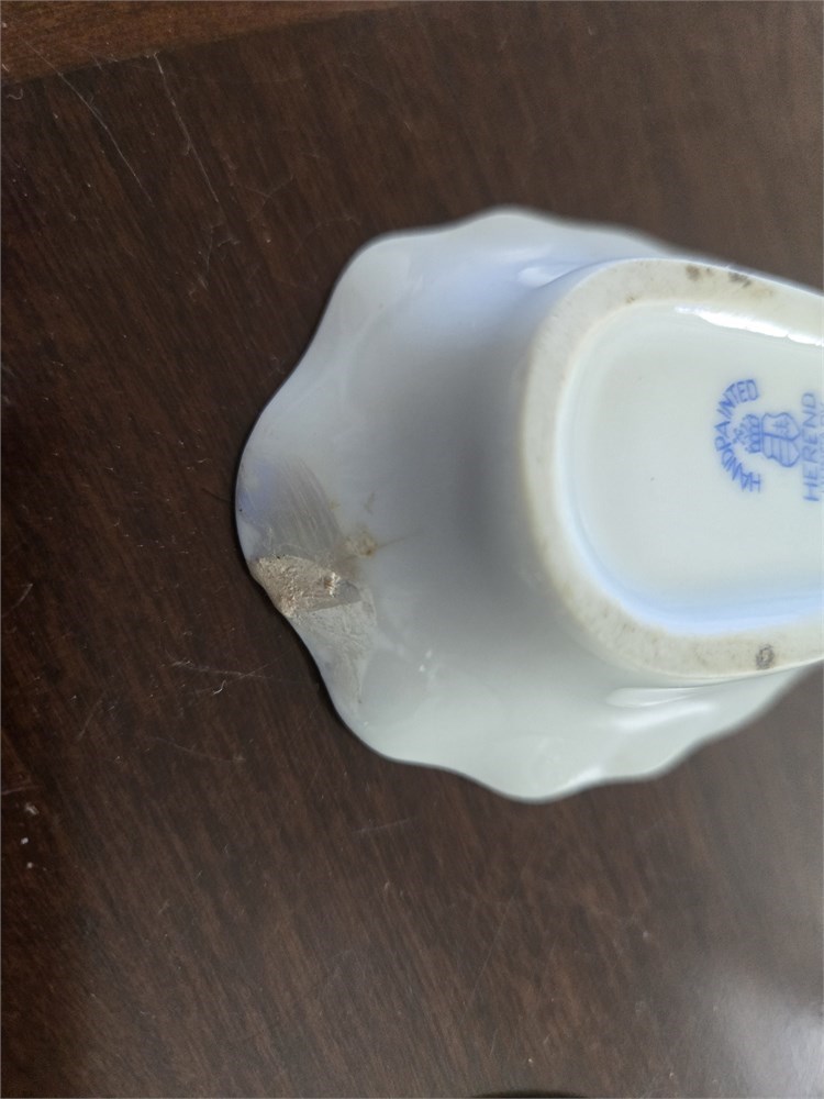 Very nice condition. Just needs a little cleaning. Only one chip on the Herend Piece, on the backside. Use the many pictures attached to confirm condition!