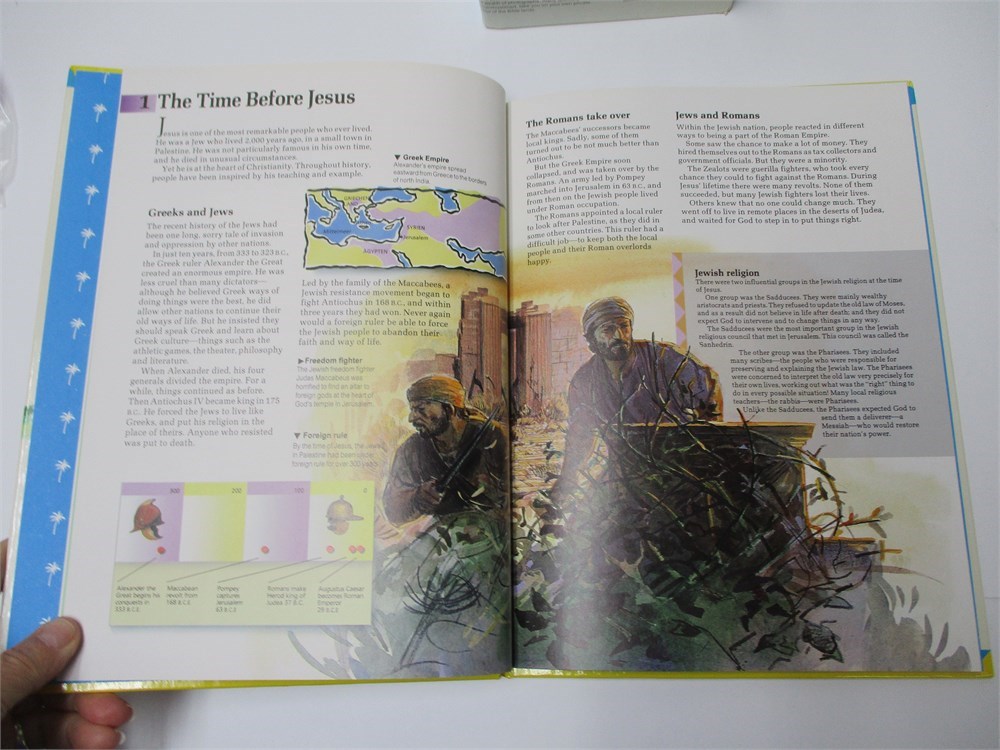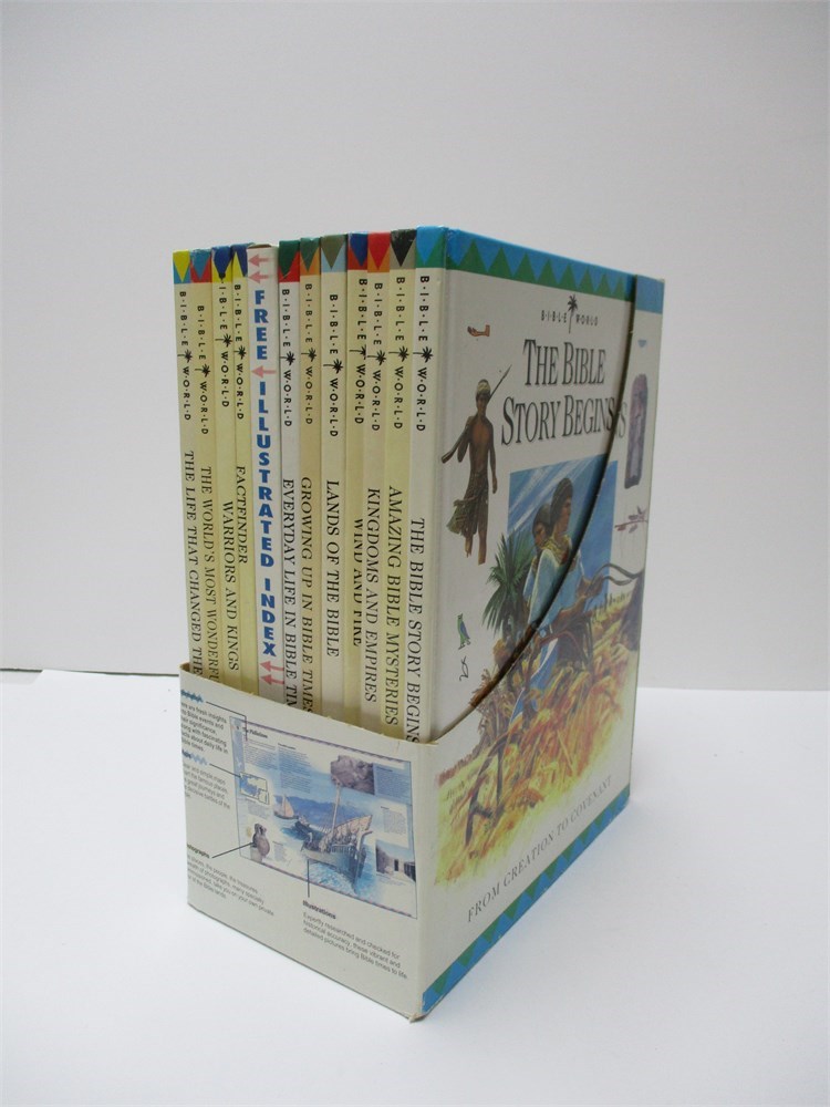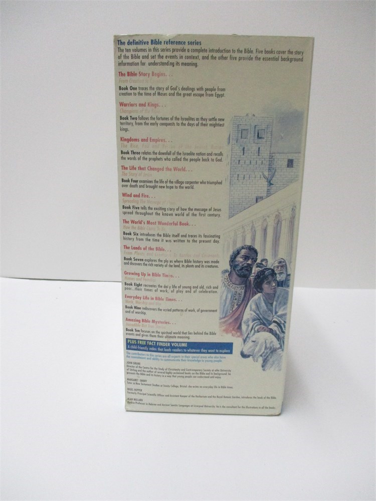 This is a wonderful full color set of books from Bible World that takes you from Creation to Covenant. It gives fresh insight into Bible Events and their significance.  Photographs of the places, people, treasures. Clear and simple maps that chart the famous places, great journeys and decisive battles of the Bible.  Expertly researched and checked for historical accuracy. All in great condition.