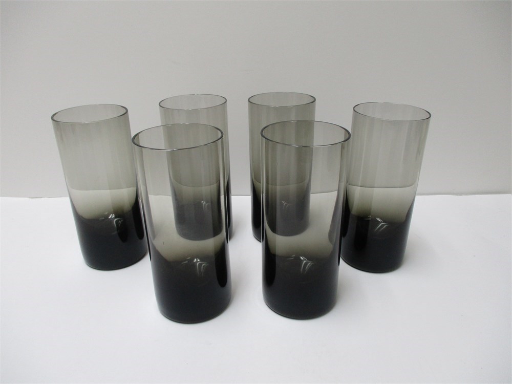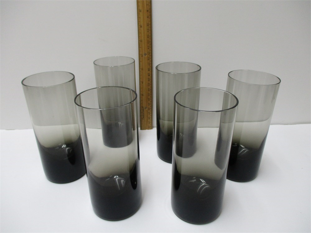 Vintage, 6 Piece, Moser, Czech, Smoke "Whiskey" Highball Tumbler, 6"