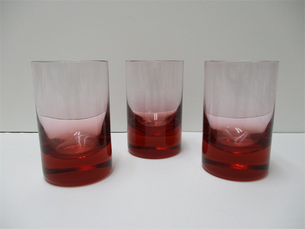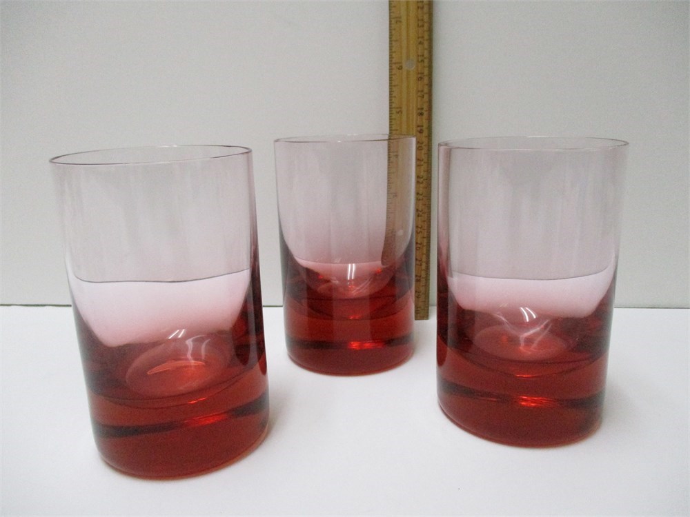 A very lovely set of 3, Vintage, Moser, Czech, Rosalin (a shade of pink-cranberry). Lead-Free Tumbler, 4.5" tall.  All are in wonderful condition. Lovely rich color which Moser is known for.  No chips or cracks to be found.