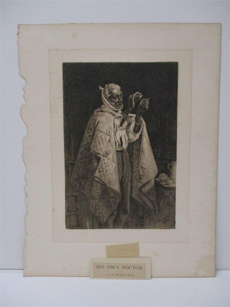 Thomas Waterman Wood, Etching, 1883, "His Own Doctor"