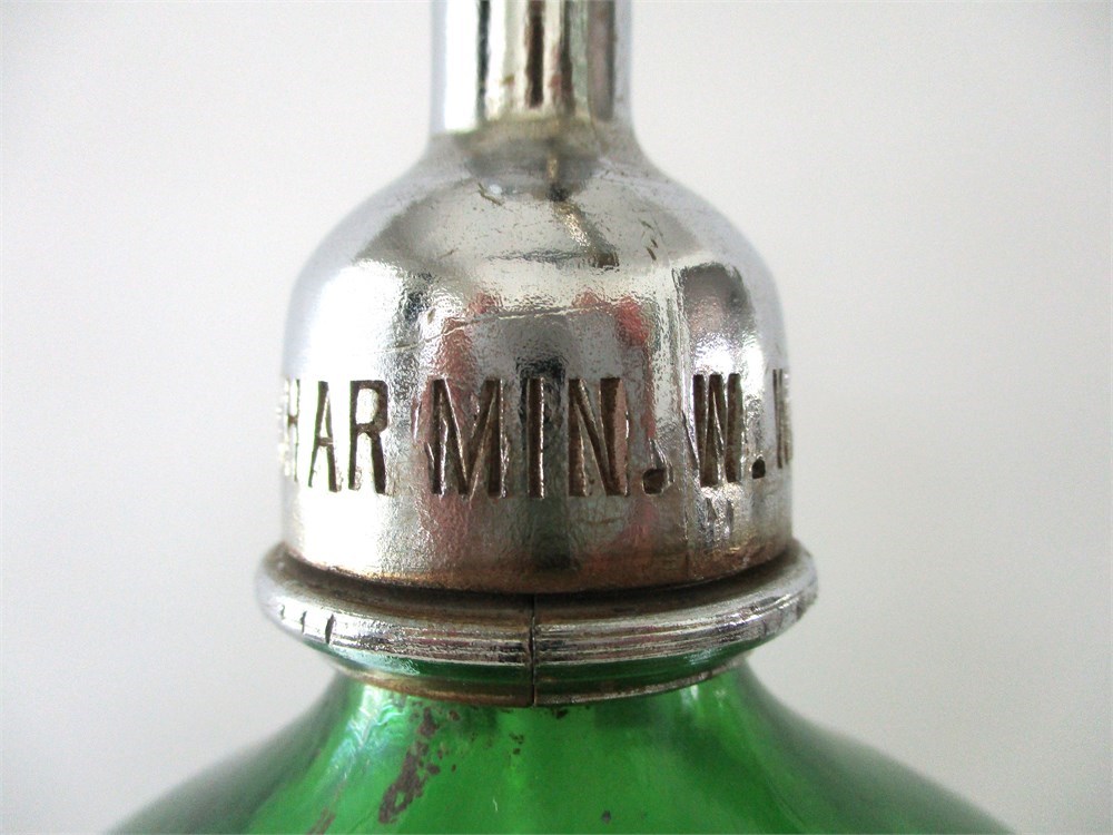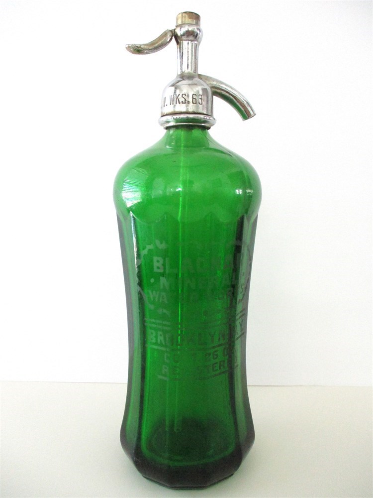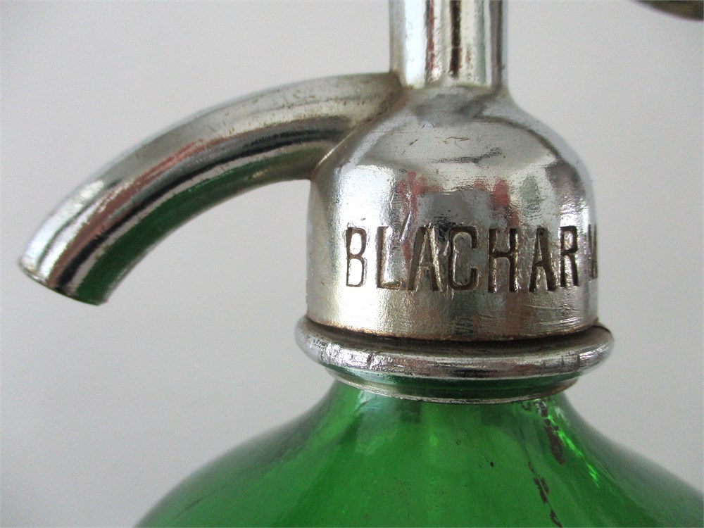 Antique, "Blachar Mineral Water Works" Green Siphon Bottle, 1900-1920