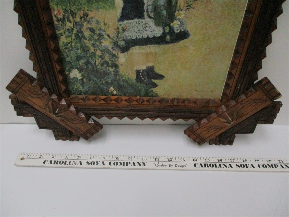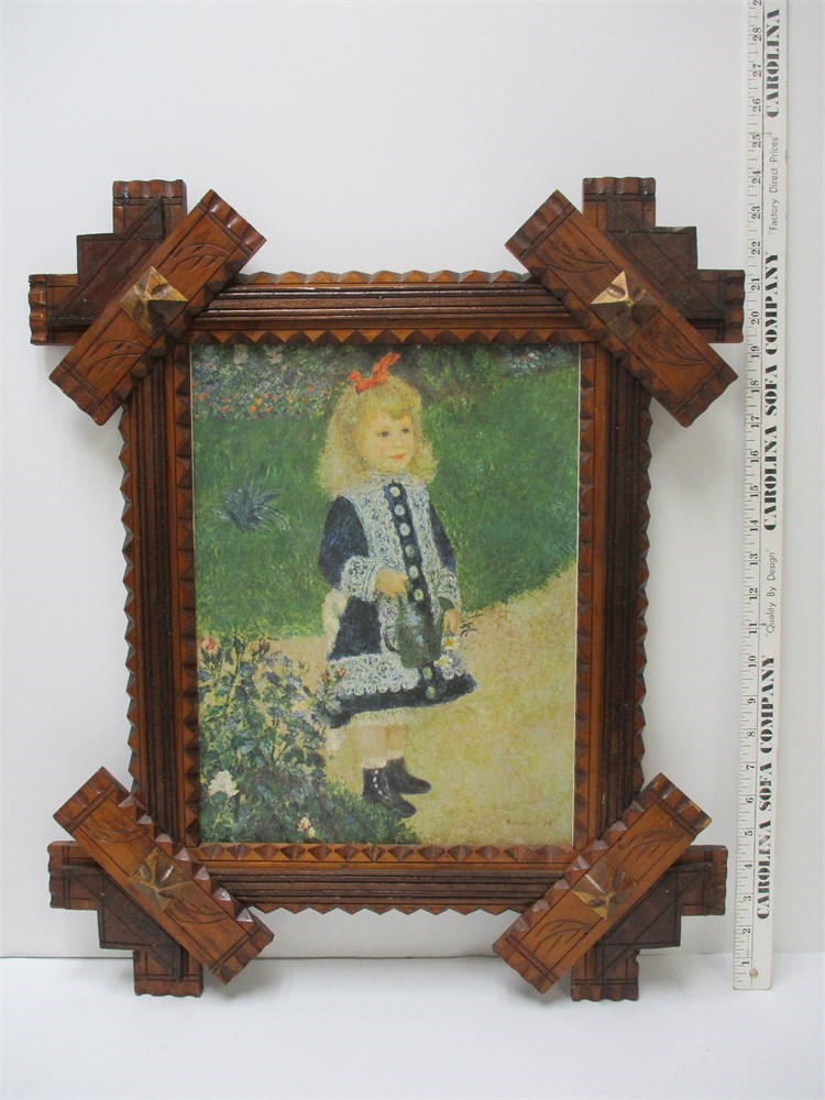 Vintage, Tramp Art Style Frame w/ Renoir Print "Girl with a Watering Can"