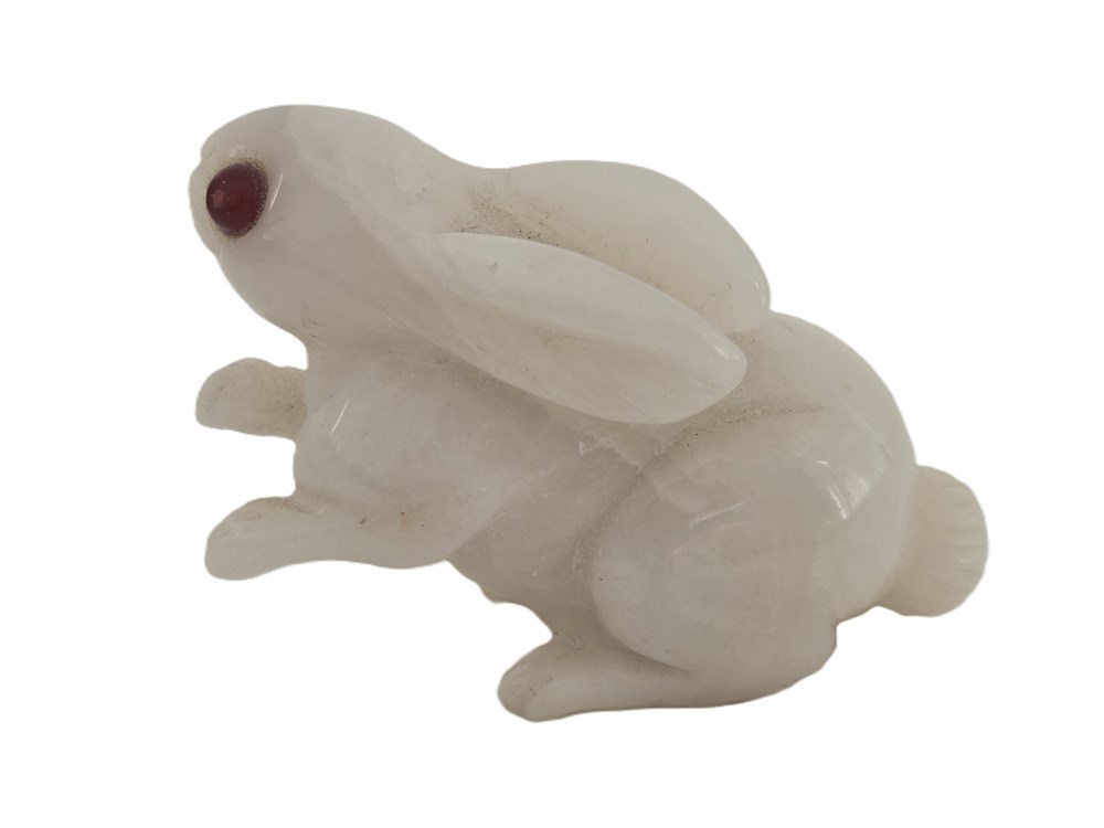 Hand-Carved Milky Quartz Rabbit Figure, 20th Century