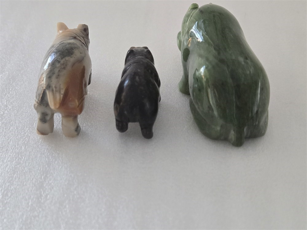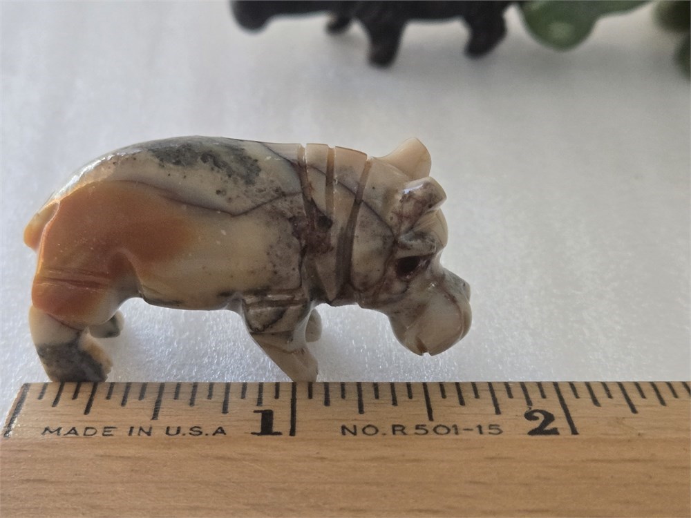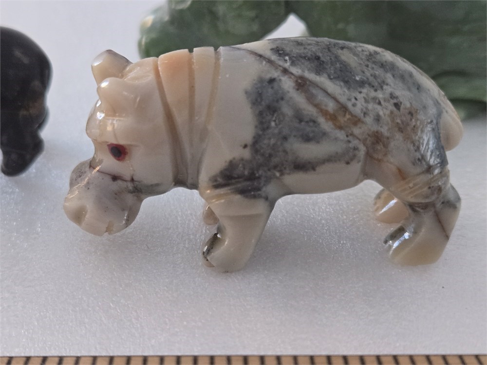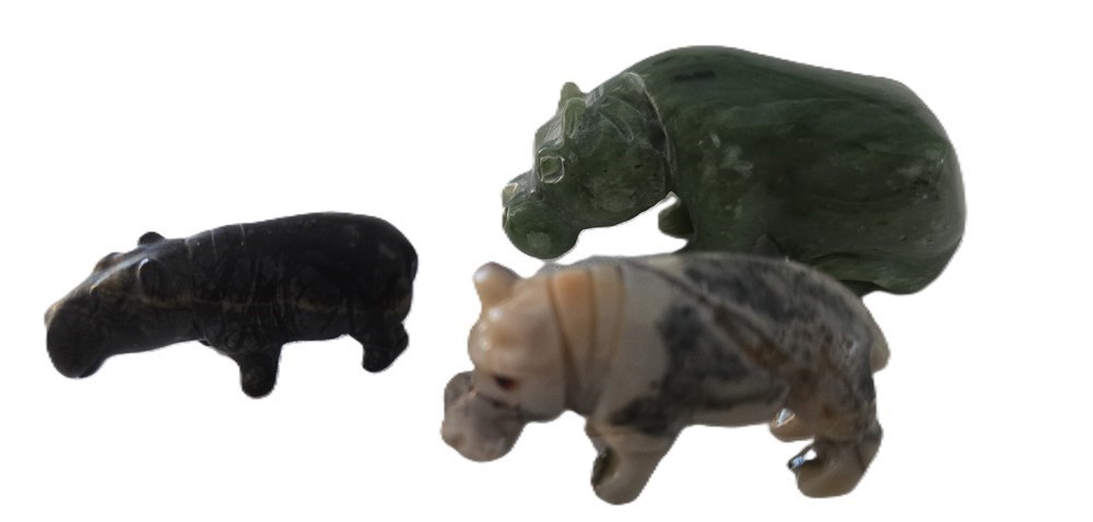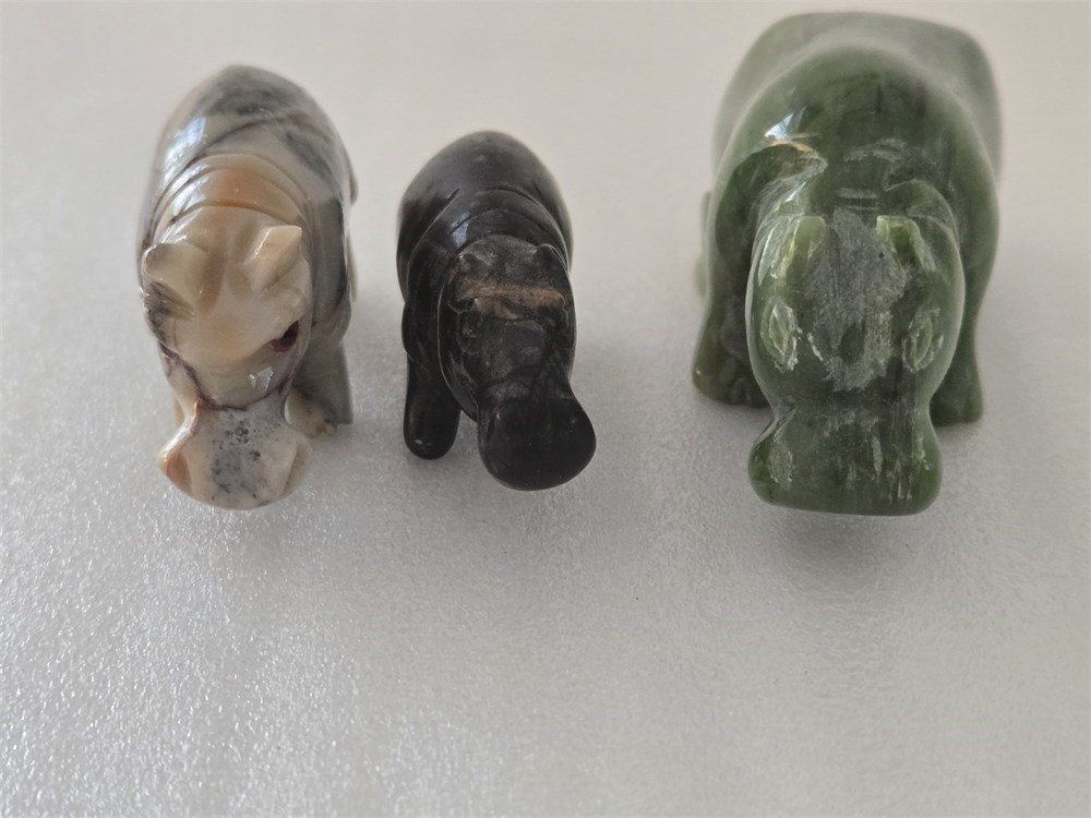 Three Vintage Hardstone Hippopotamus Carvings Jade and more