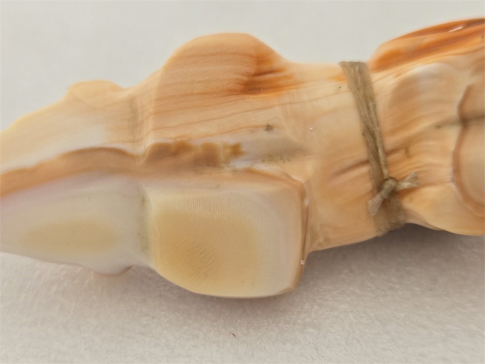 Well polished with pleasing translucency at the edges and attractive natural banding throughout the stone. Unsigned, as typical for many small workshop carvings of the period.