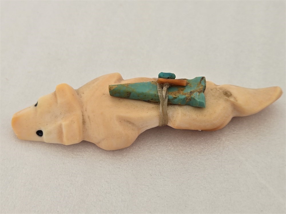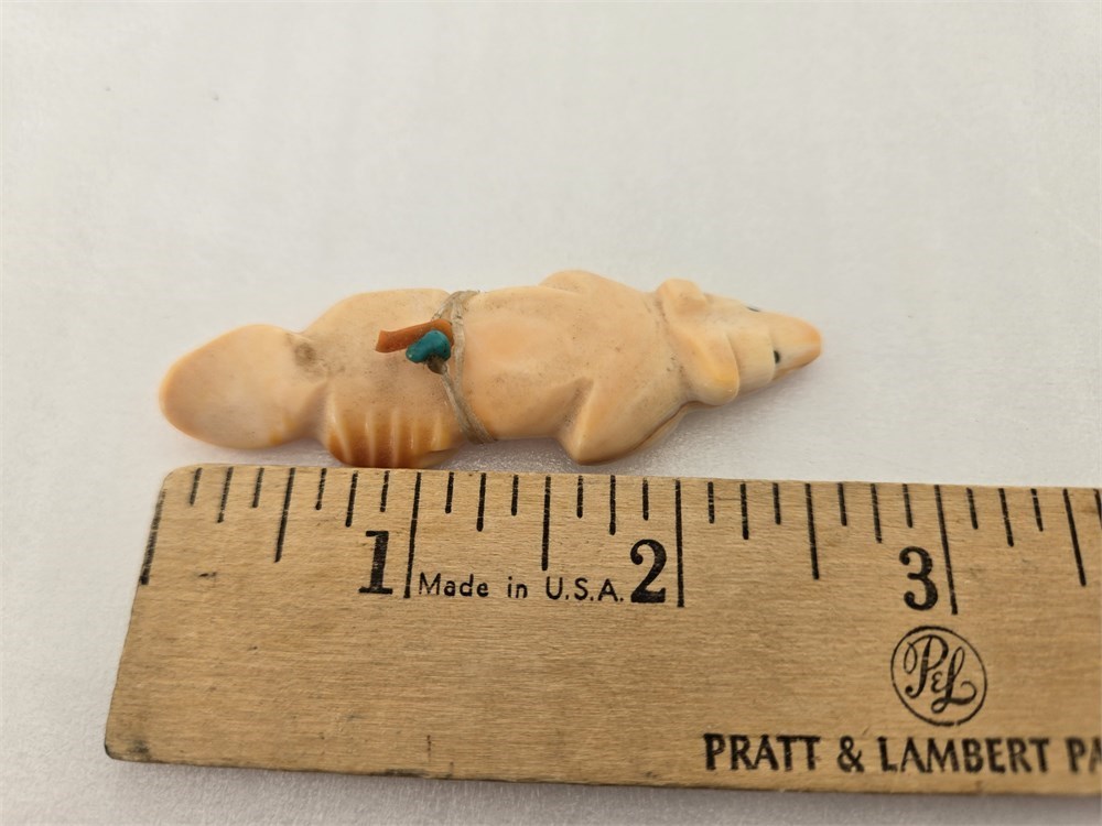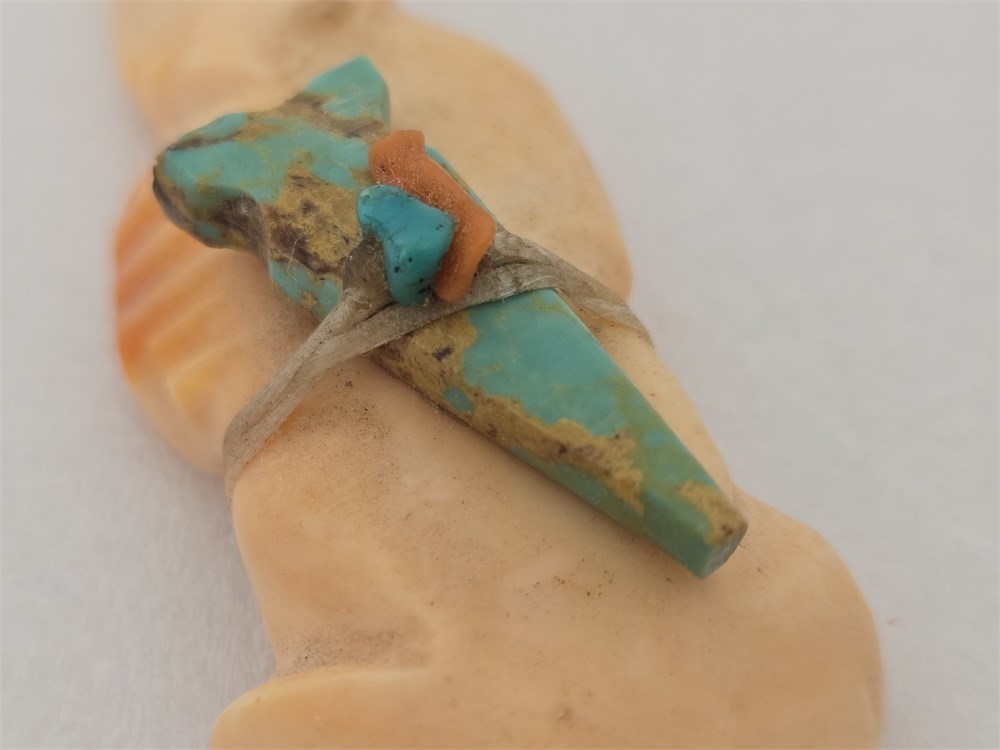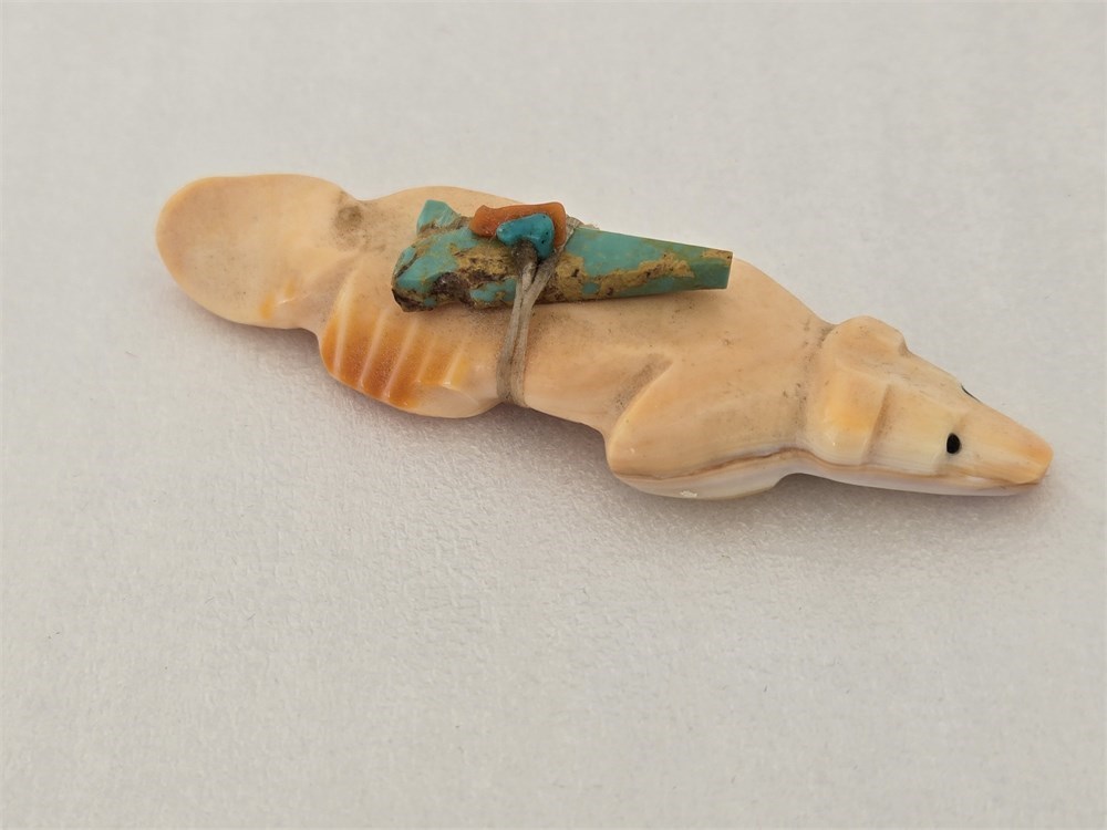 Zuni Carved Stone Animal Fetish with Turquoise Medicine Bundle