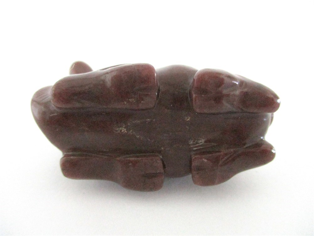 This is a Lovely, Vintage, Brown Jade Camel Figurine in a kush position.  It is very nicely and simply detailed from all sides.  Brown Jade is associated with nurturing energy, physical vitality, and strengthening one's connection to the Earth.  It measures 2" wide x 1.5" high.