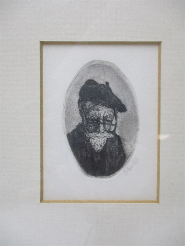 Vintage, Framed Etching, Self Portrait?, Signed but Illegible