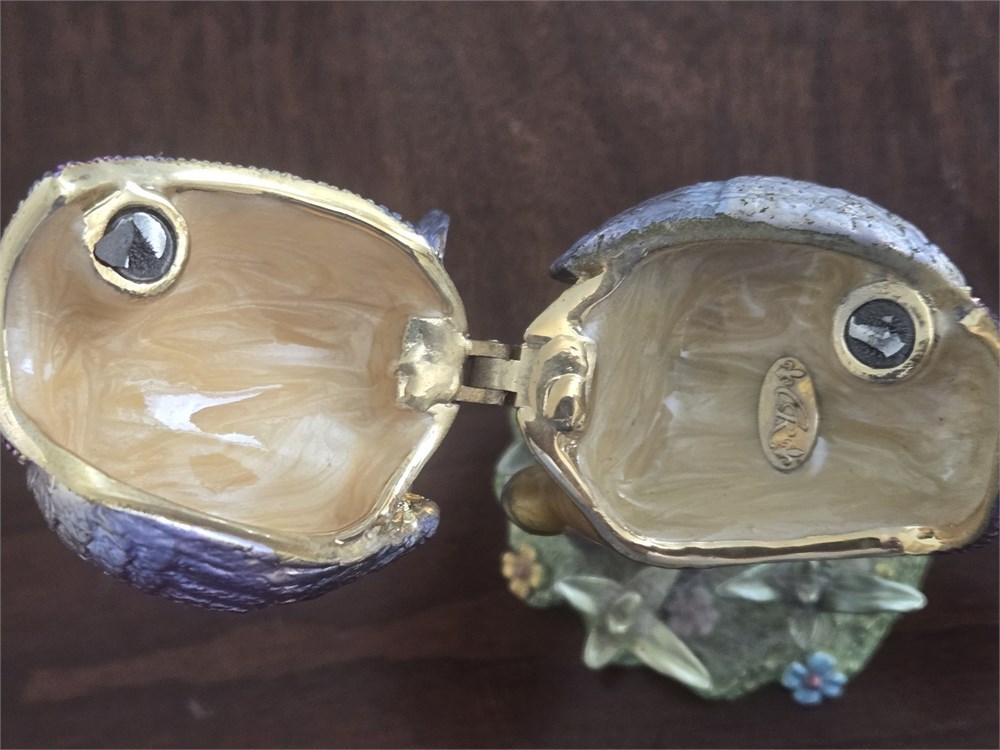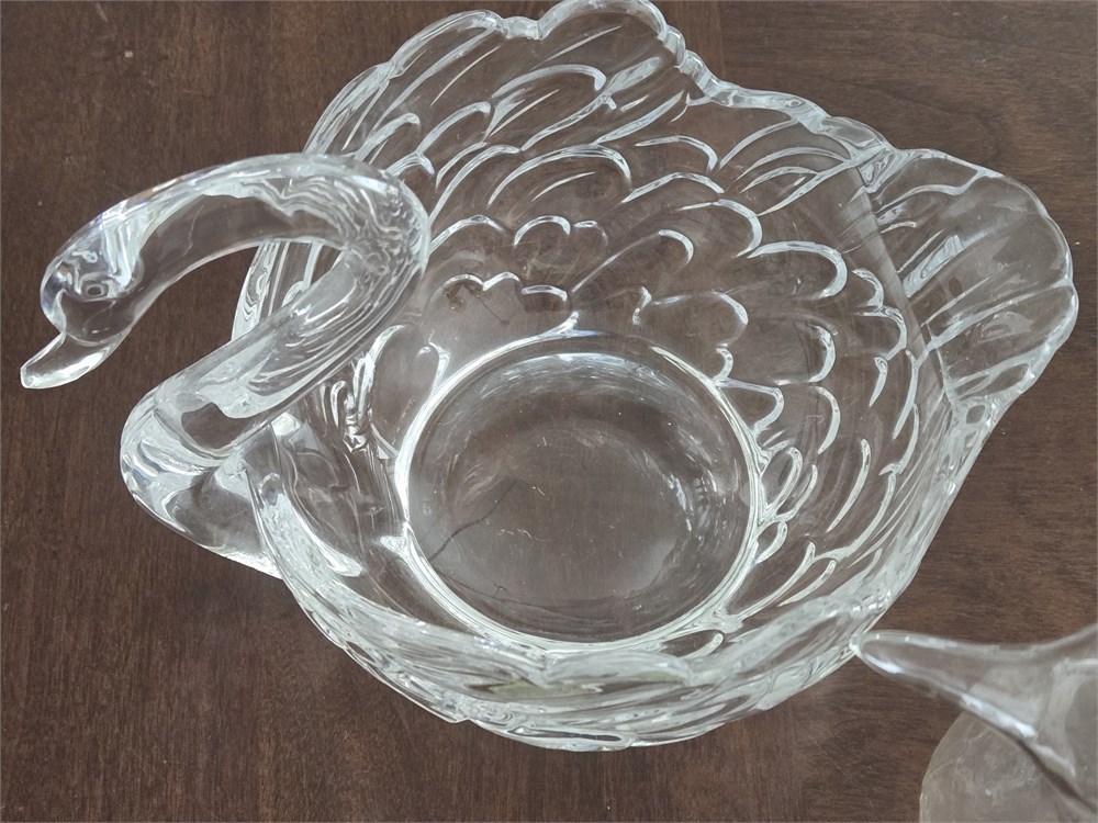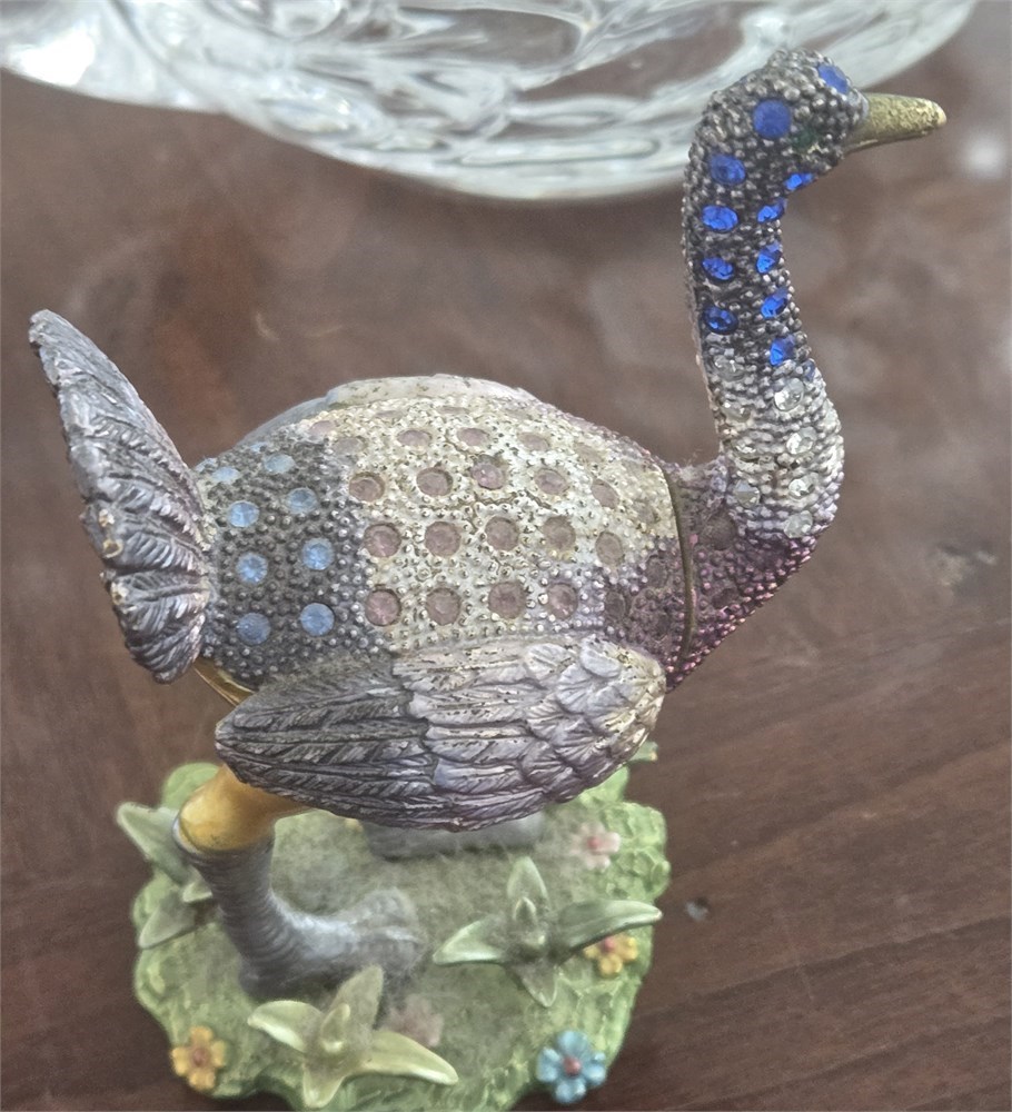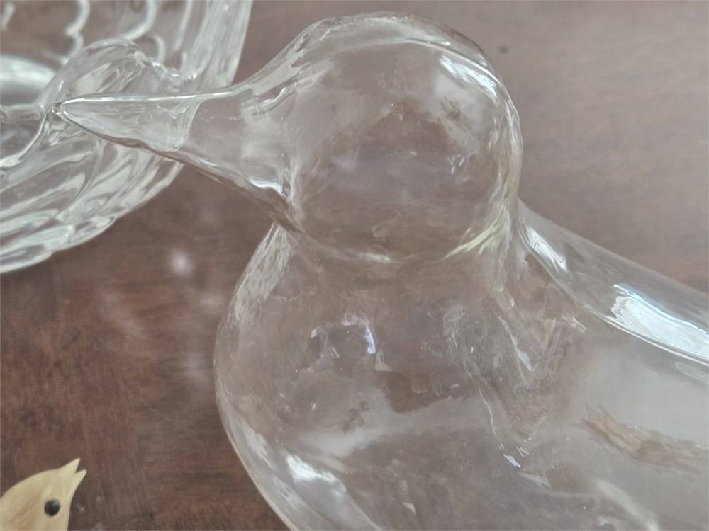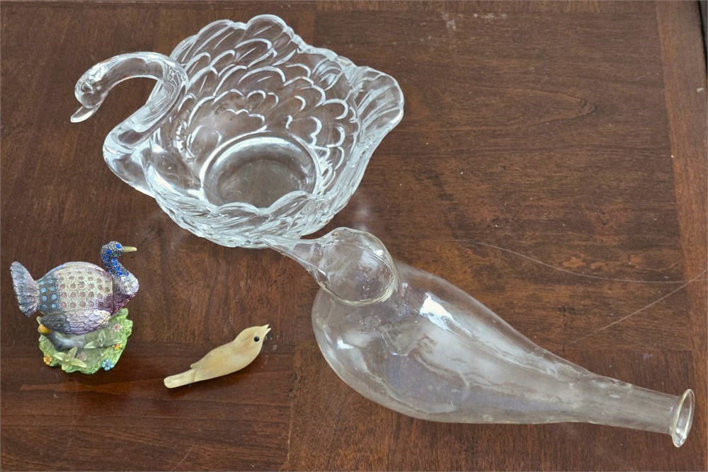 Heavy Glass Swan, Blown Glass Bird Flower Holder, Horn carving,Trinket Box