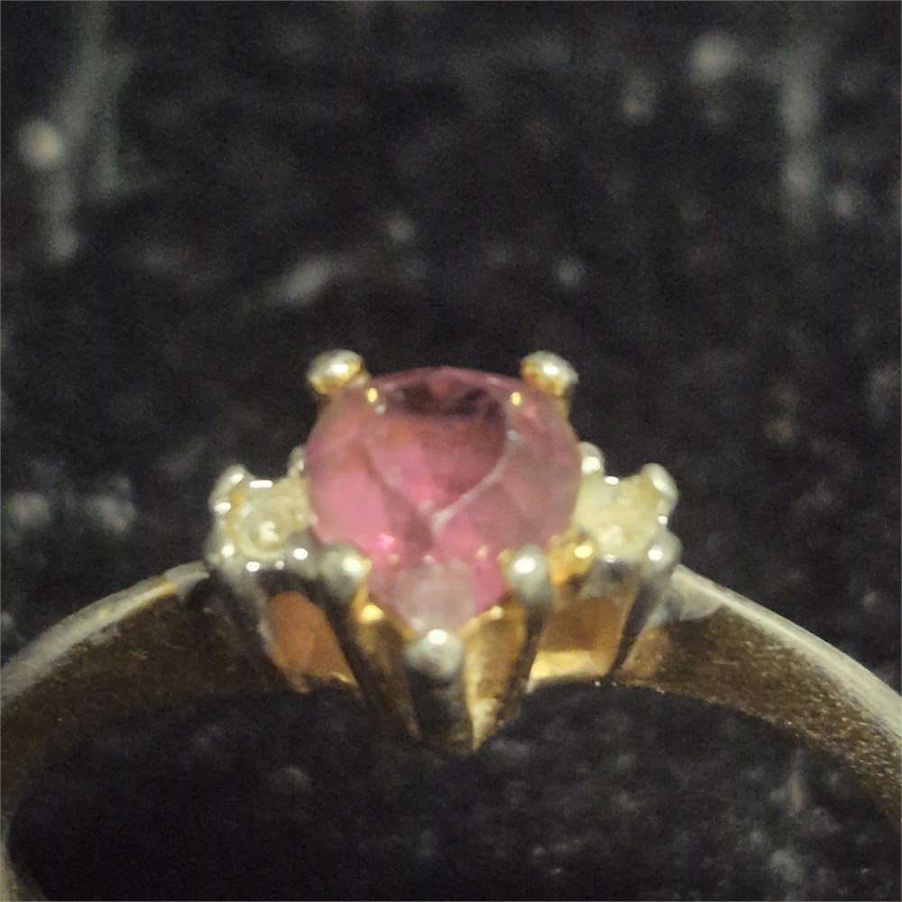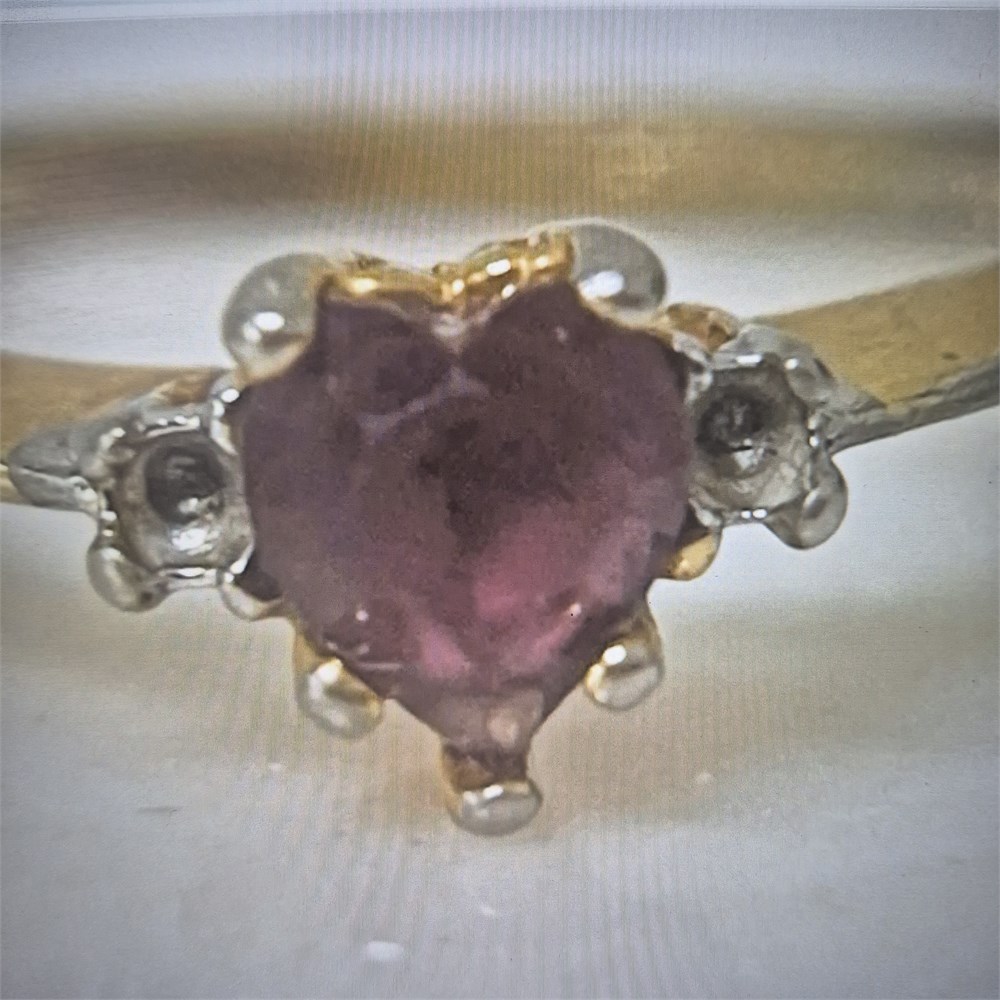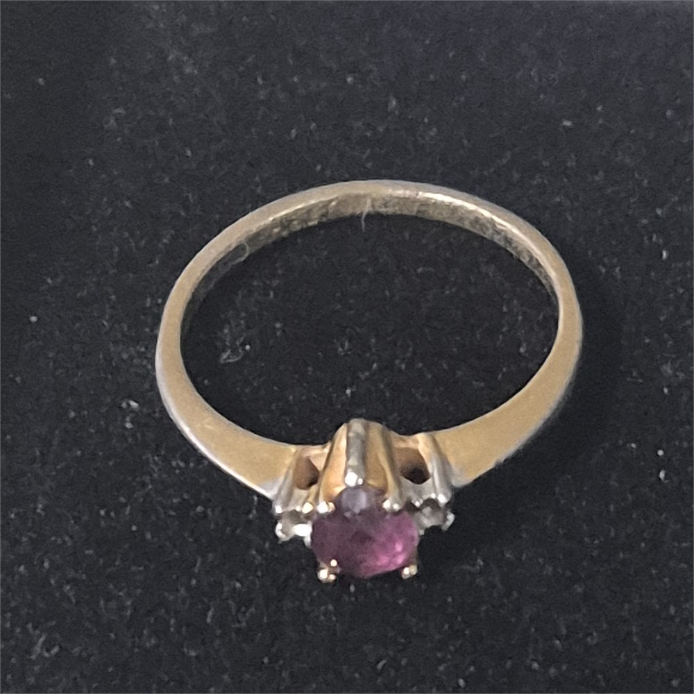 Petite Ruby solitaire with CZ stones ~ EGP marked [v]