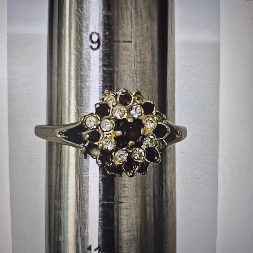 Antique EGP and Bohemian Garnet Ring w/ CZ rhinestones [v]