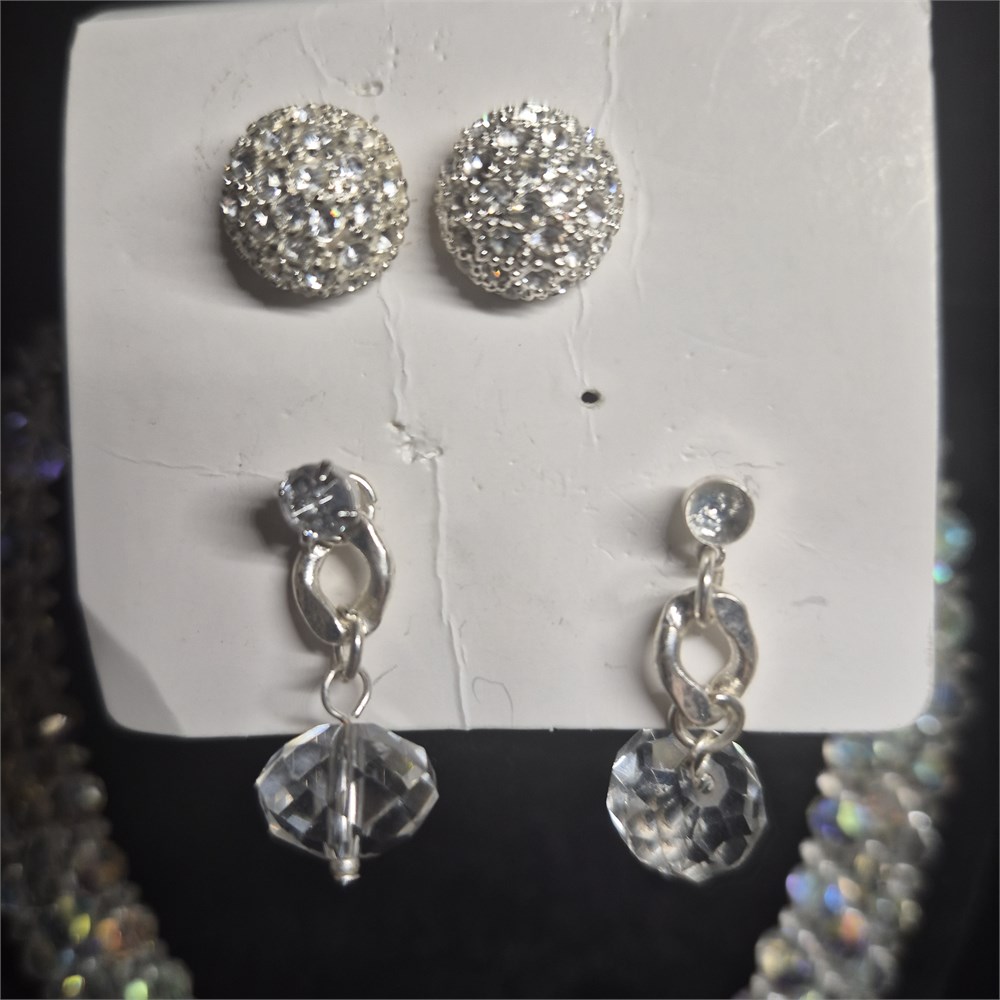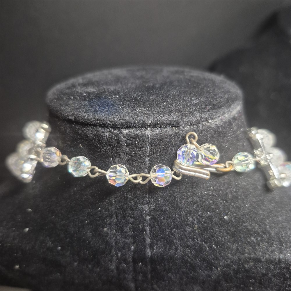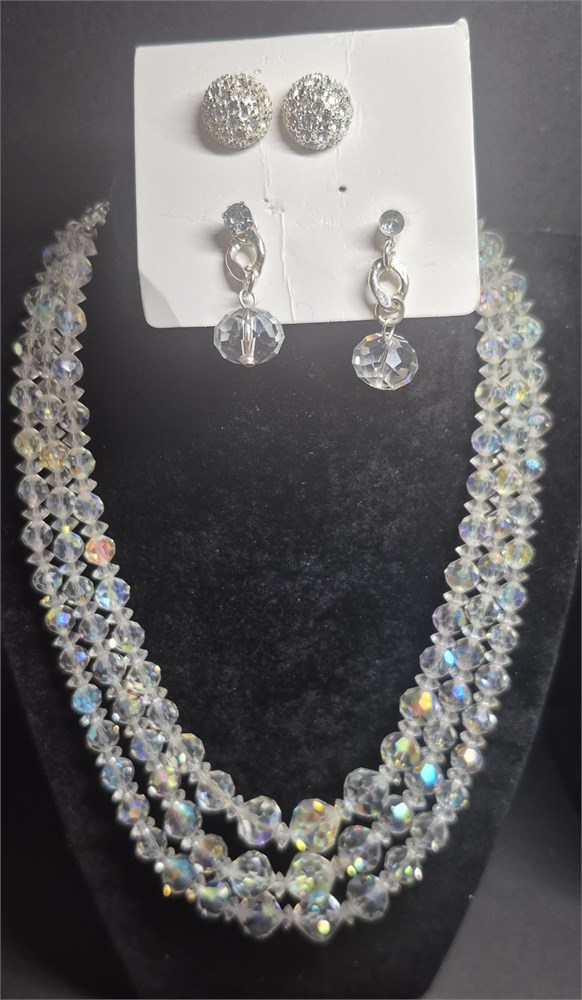 3 Strands Aurora Crystal Sparkling clear Necklace Estate & Earrings