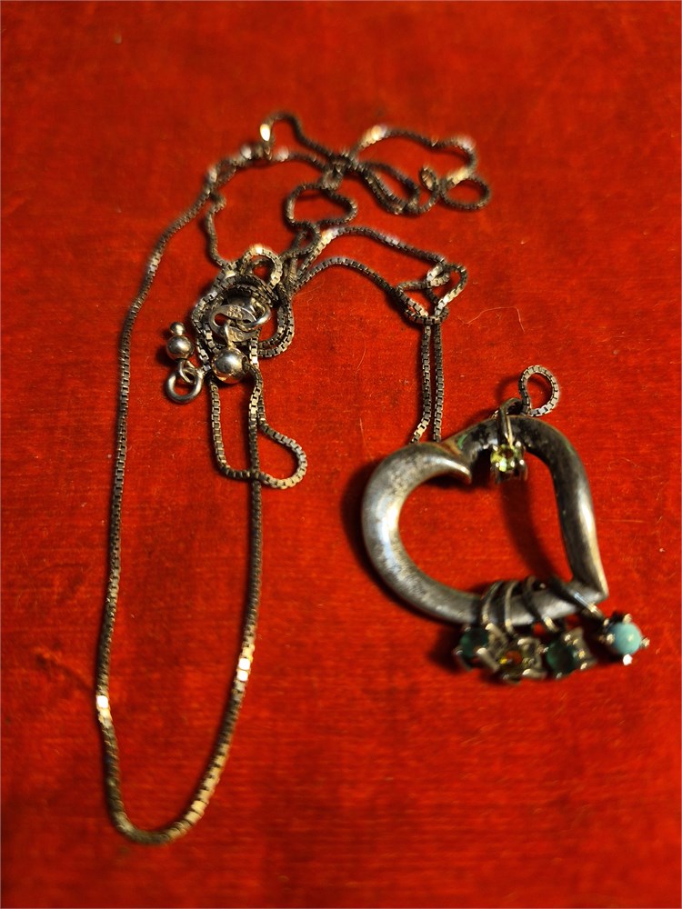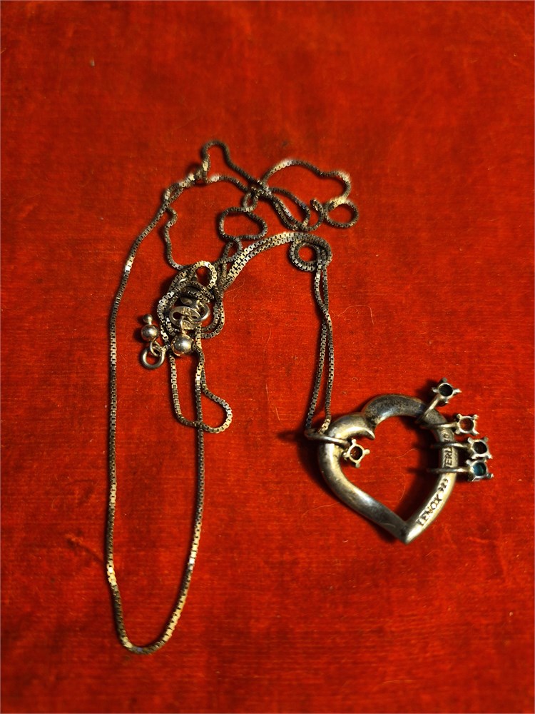 Sterling silver necklace with sterling silver heart shaped pendant. Total weight is 8.62g.