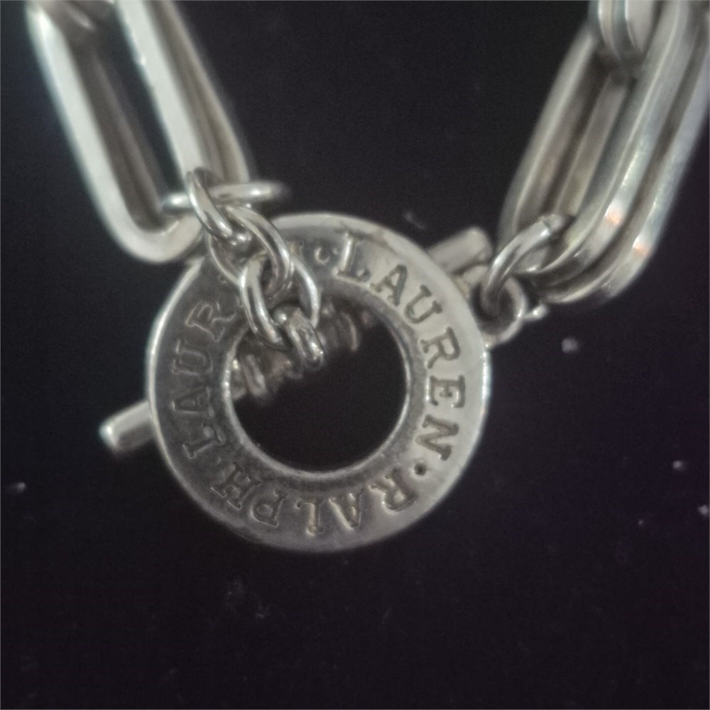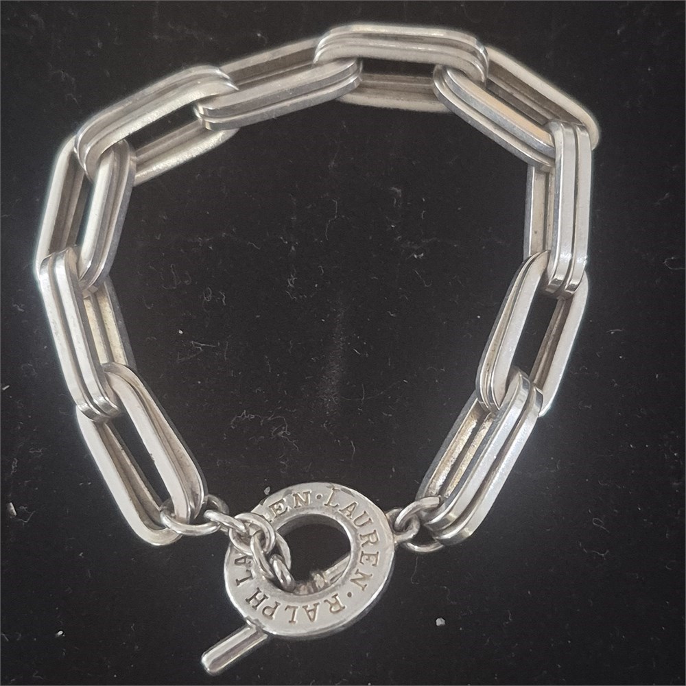 > RL Bracelet is thick silvertone clips with classic RL logo pass thru