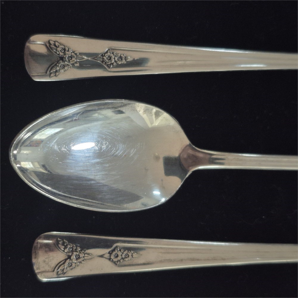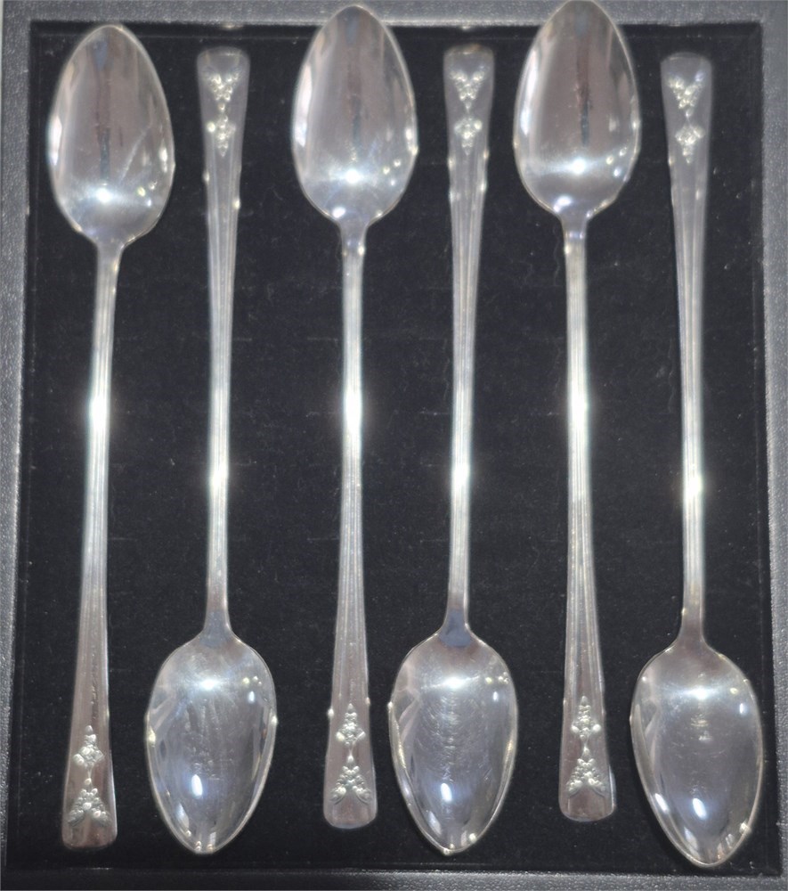 Vtg Rosebud 6 ICE TEA SPOONS ~ Gailstyn Pattern Silverplate Flatware