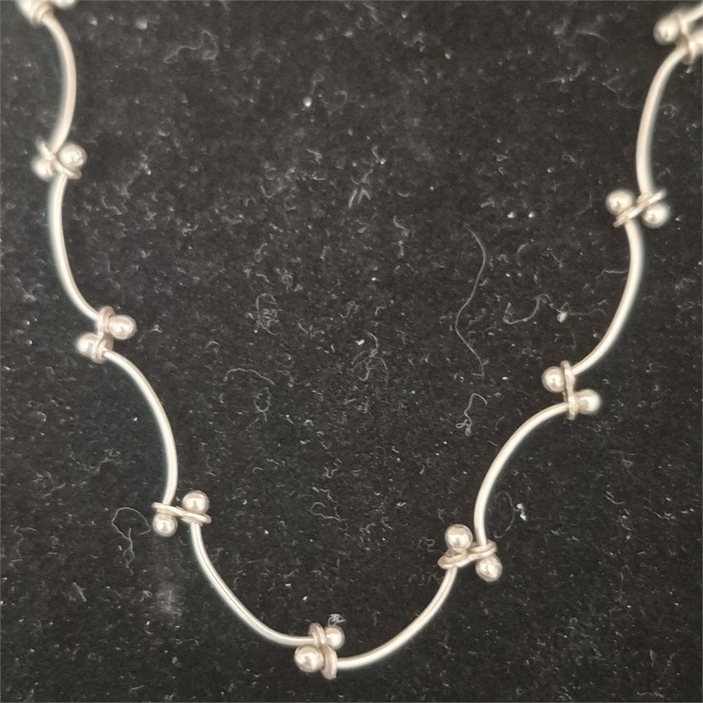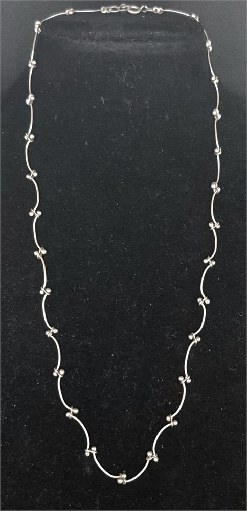 925 Sterling Scalloped beaded dainty Necklace