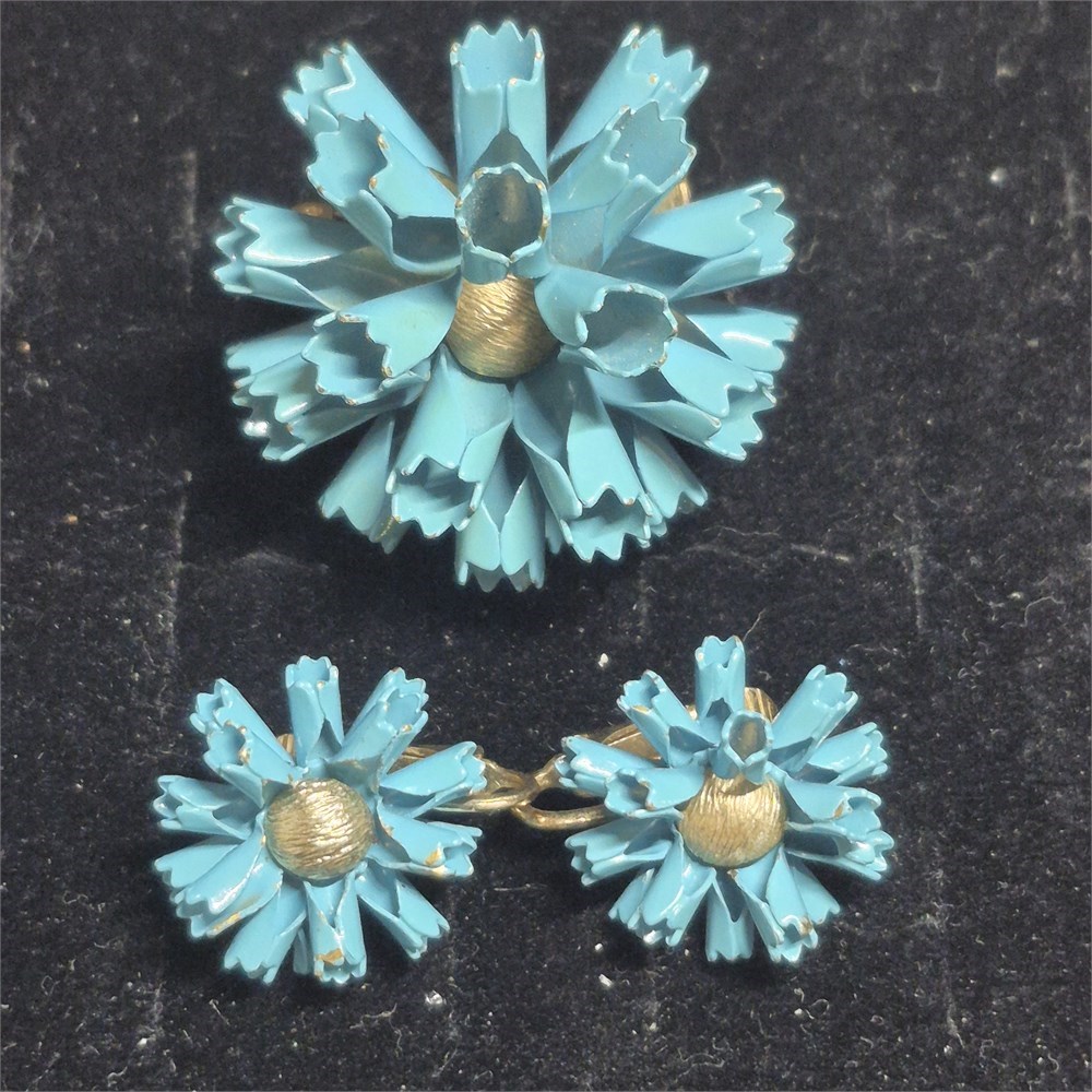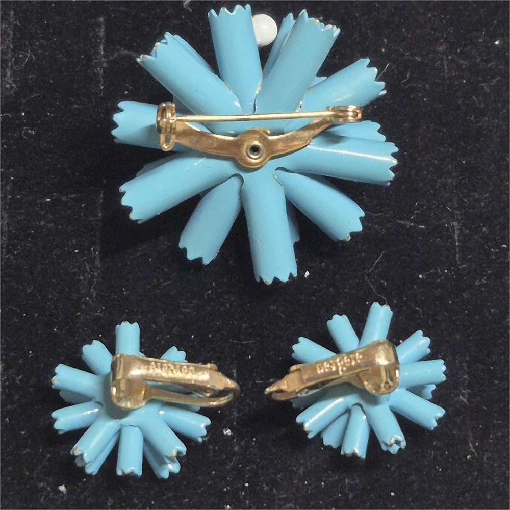BEREBE celluloid set ~ Brooch & matching Earrings  c1980s
