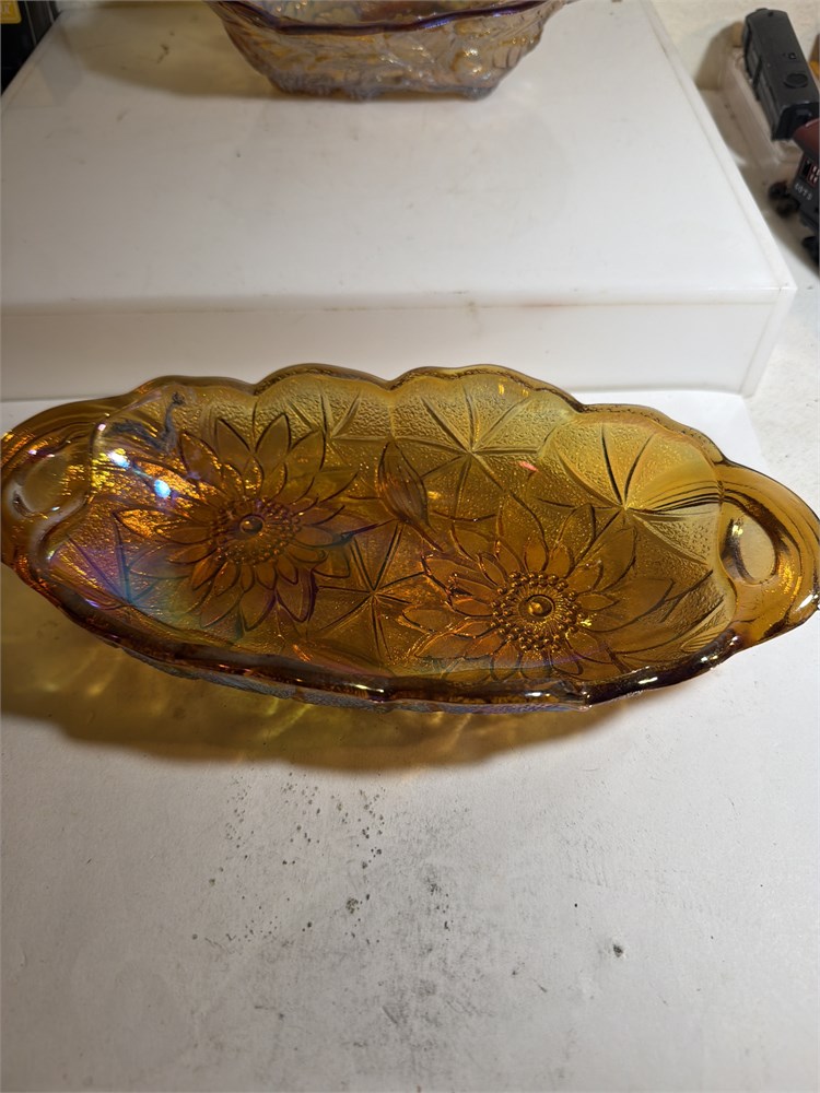 2 VINTAGE CARNIVAL GLASS DISHES (L)