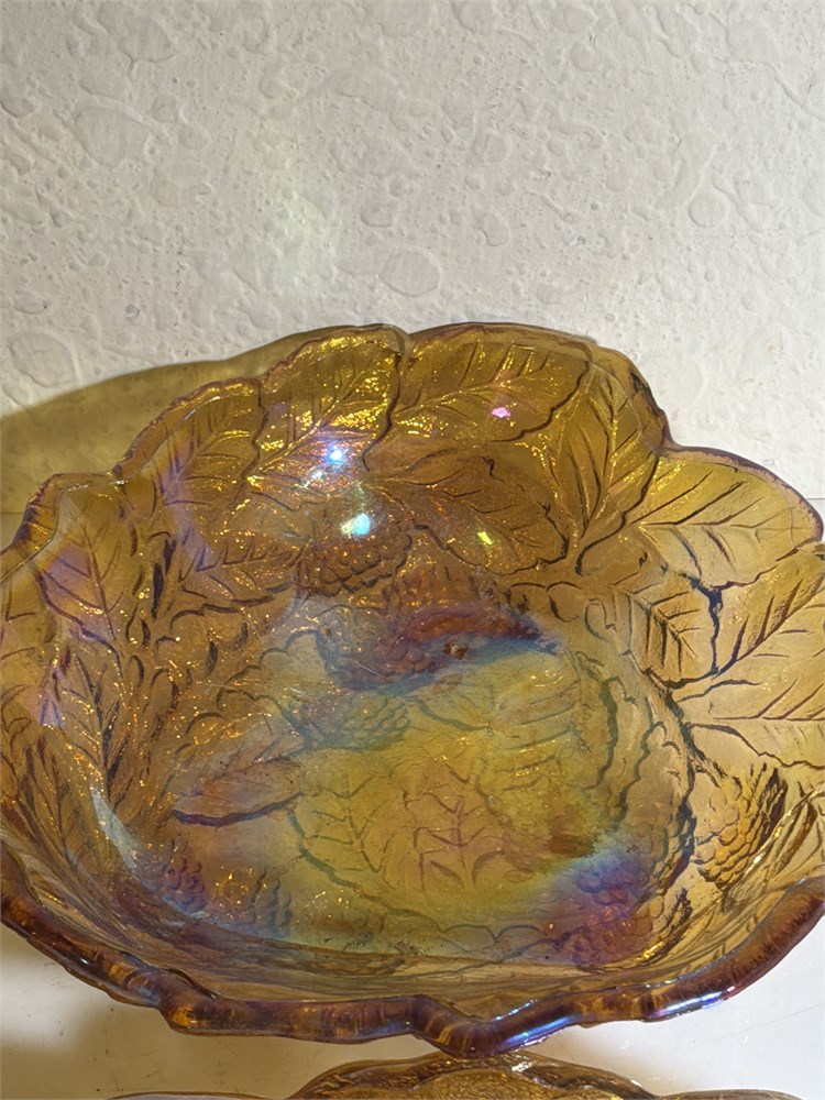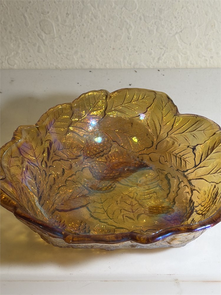 2 VINTAGE CARNIVAL GLASS DISHES WITH LEAF DESIGN AND SHAPE-7"And 10” absolutely just beautiful