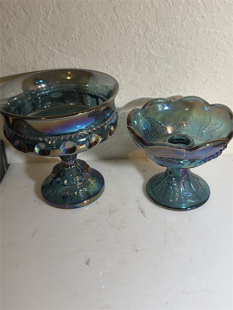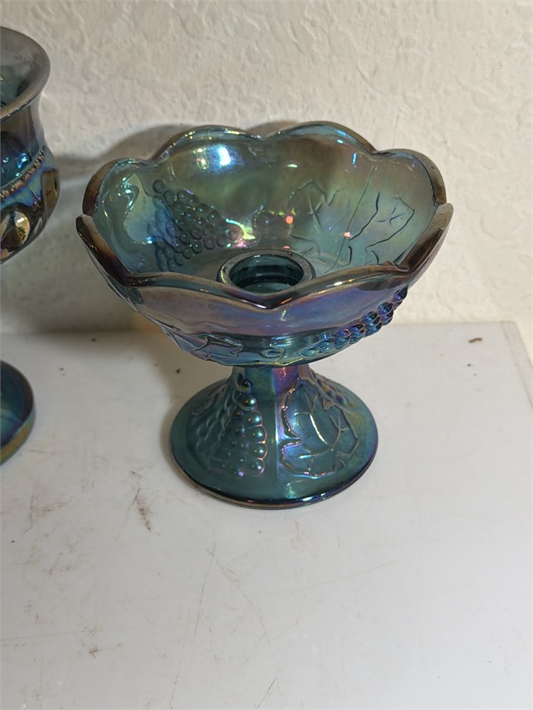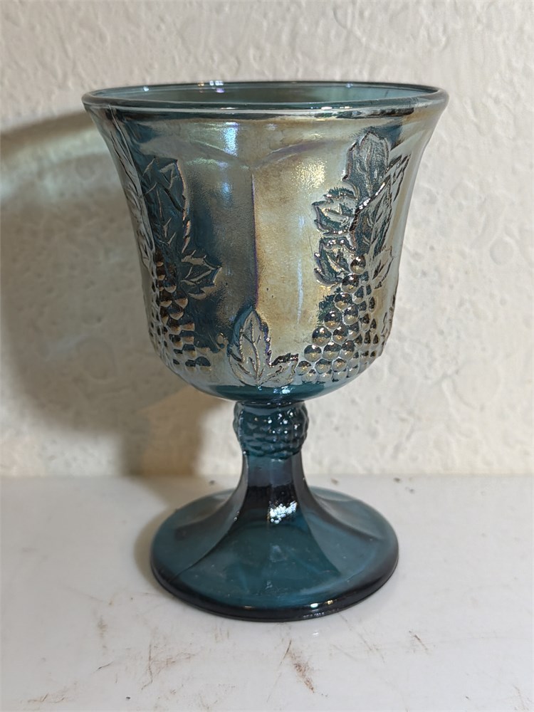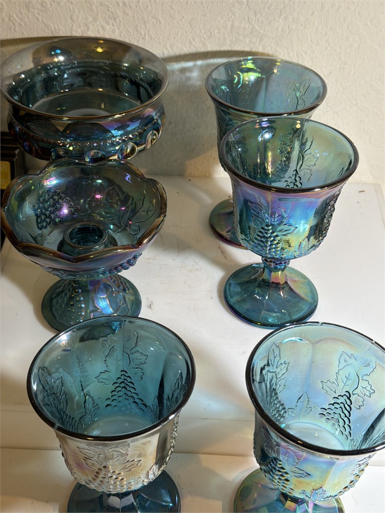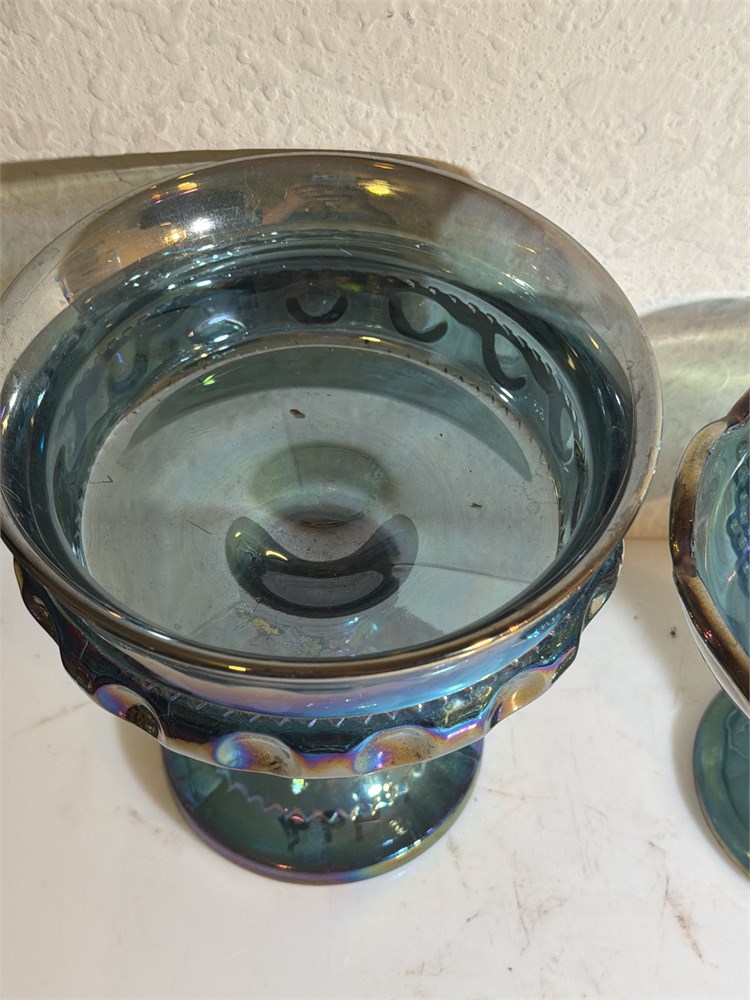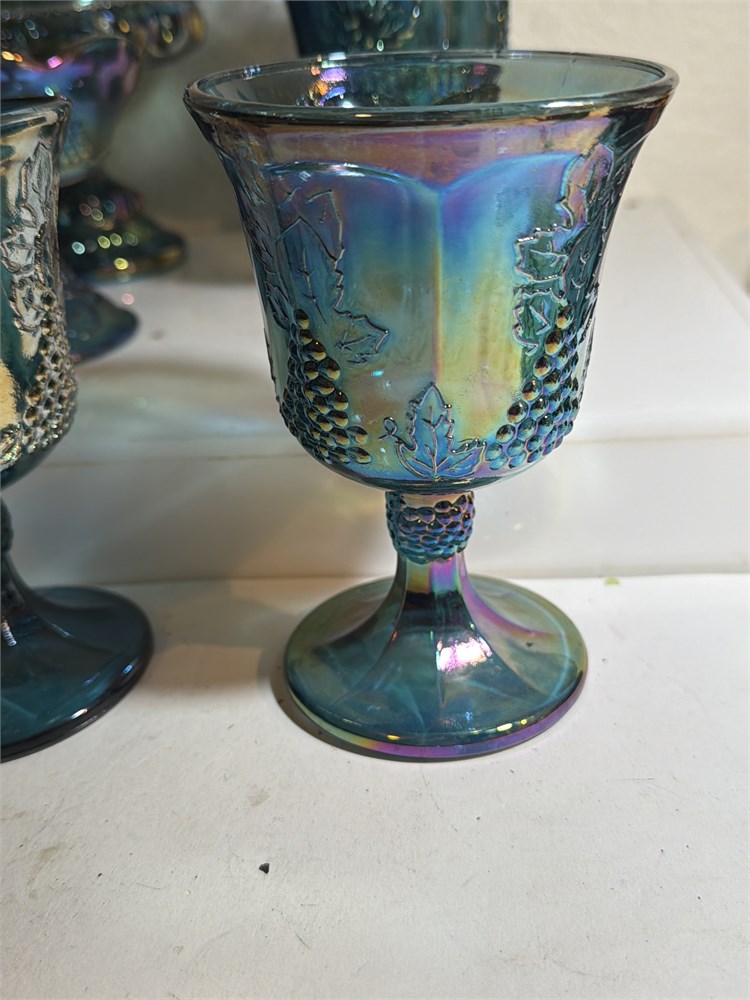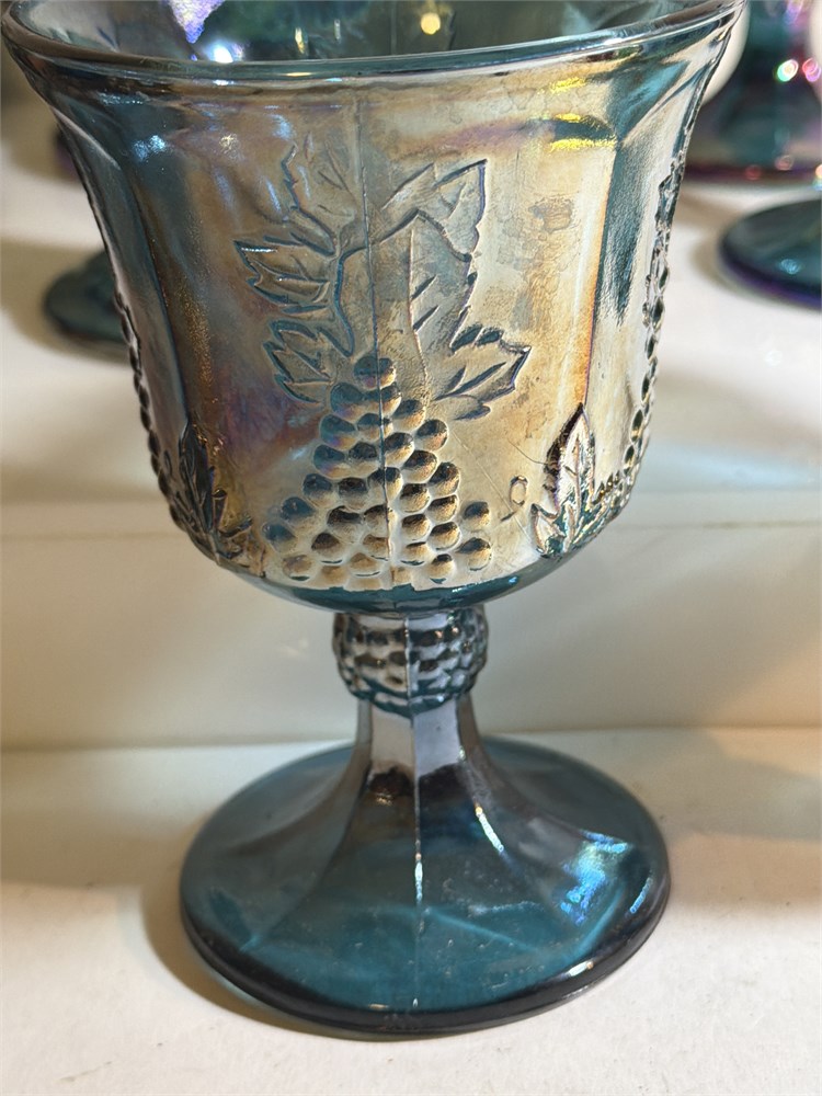 Set of 4 Indiana Glass Iridescent Blue Carnival Glass Goblets(L)